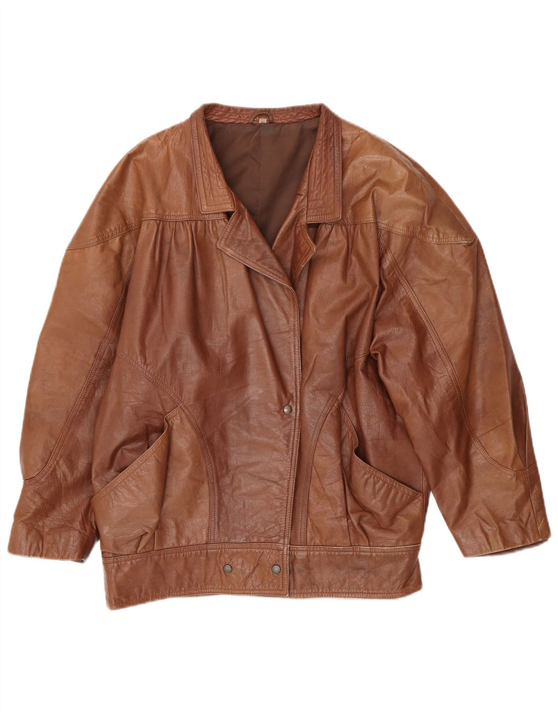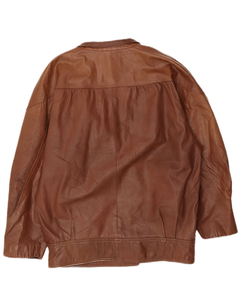 VINTAGE Womens Loose Fit Leather Jacket EU 40 Medium Brown Leather