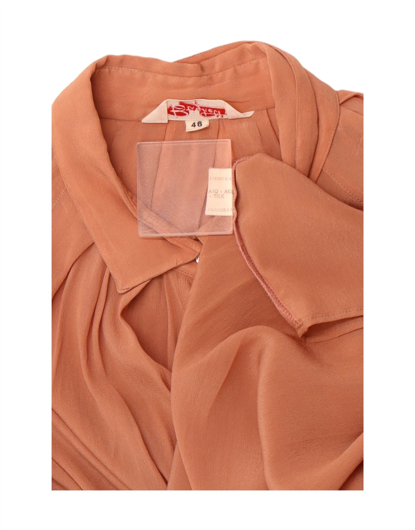 VINTAGE Womens Long Sleeve Shirt Blouse EU 36 Small Beige Floral Silk