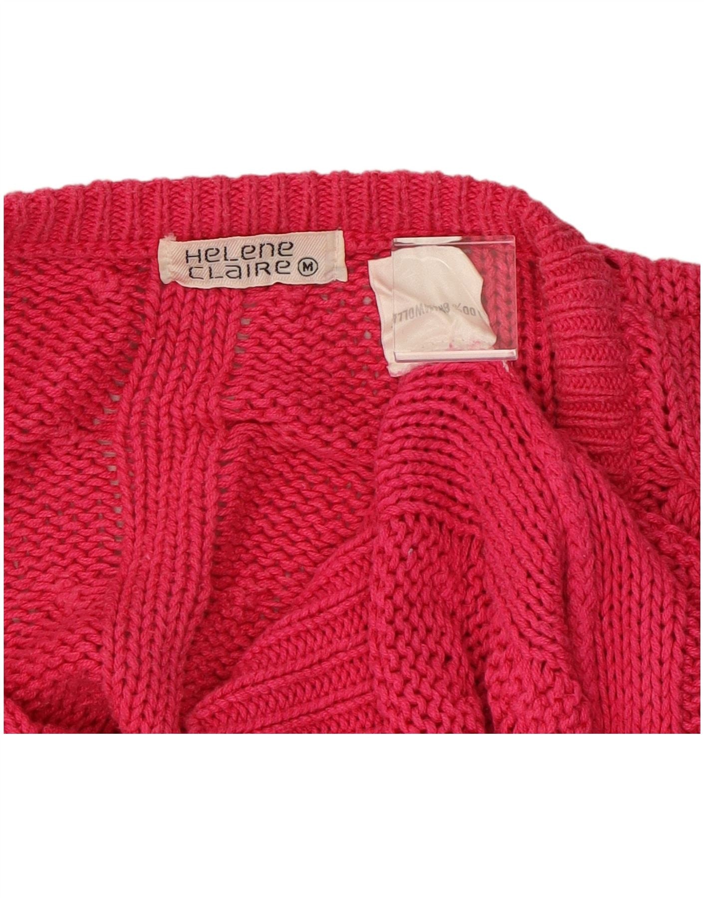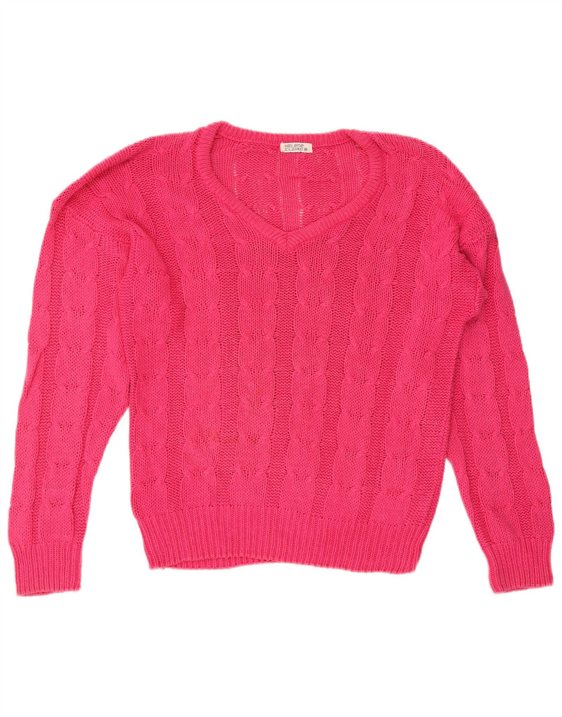 VINTAGE Womens Loose Fit V-Neck Jumper Sweater UK 14 Medium Pink Cotton