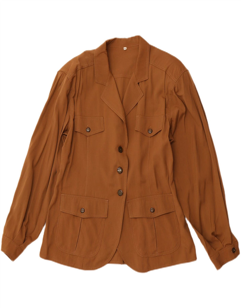 VINTAGE Womens Military 3 Button Blazer Jacket IT 46 Large Brown Viscose