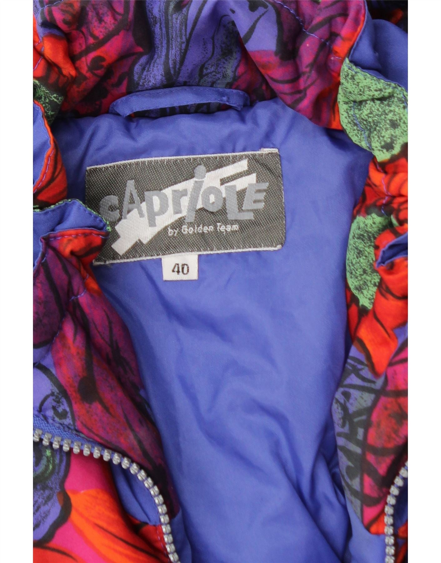 - AI Description: This Capriote By Golden Team womens ski jumpsuit is crafted from durable woven fabric, ideal for the slopes. It features a vibrant, crazy floral pattern in blue and multicoloured tones. The collared neckline and long sleeves provide full coverage. A full zip closure secures the front. It boasts a regular fit, cinched by a stylish belt with a buckle accent. Zipped pockets offer practical storage. This retro-inspired piece combines functionality with a bold, eye-catching design.