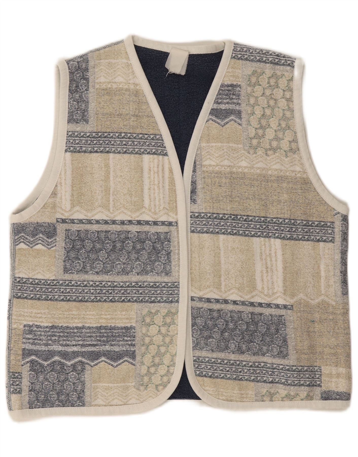 VINTAGE Womens Open Gilet UK 18 XL Beige Patchwork