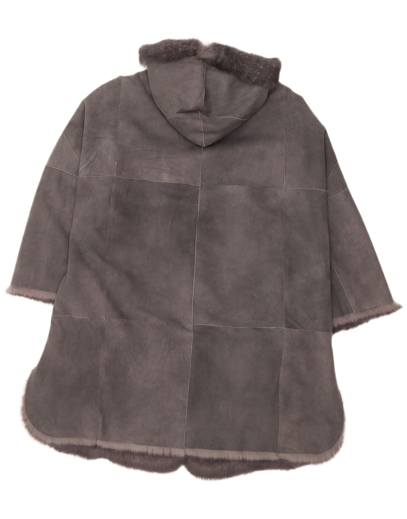 Vintage Womens Oversized 3/4 Sleeve Hooded Shearling Coat IT 44 Medium Grey