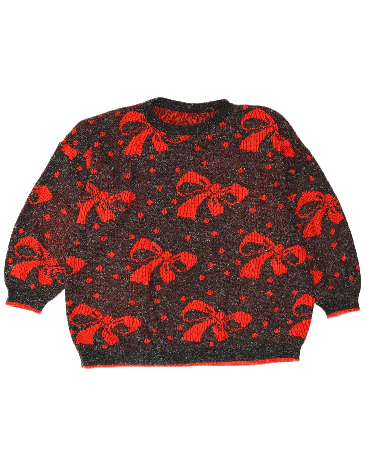 VINTAGE Womens Oversized Crew Neck Jumper Sweater UK 22 3XL Grey Polka Dot