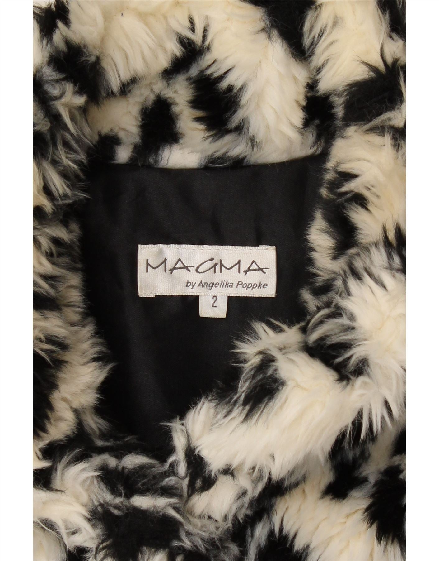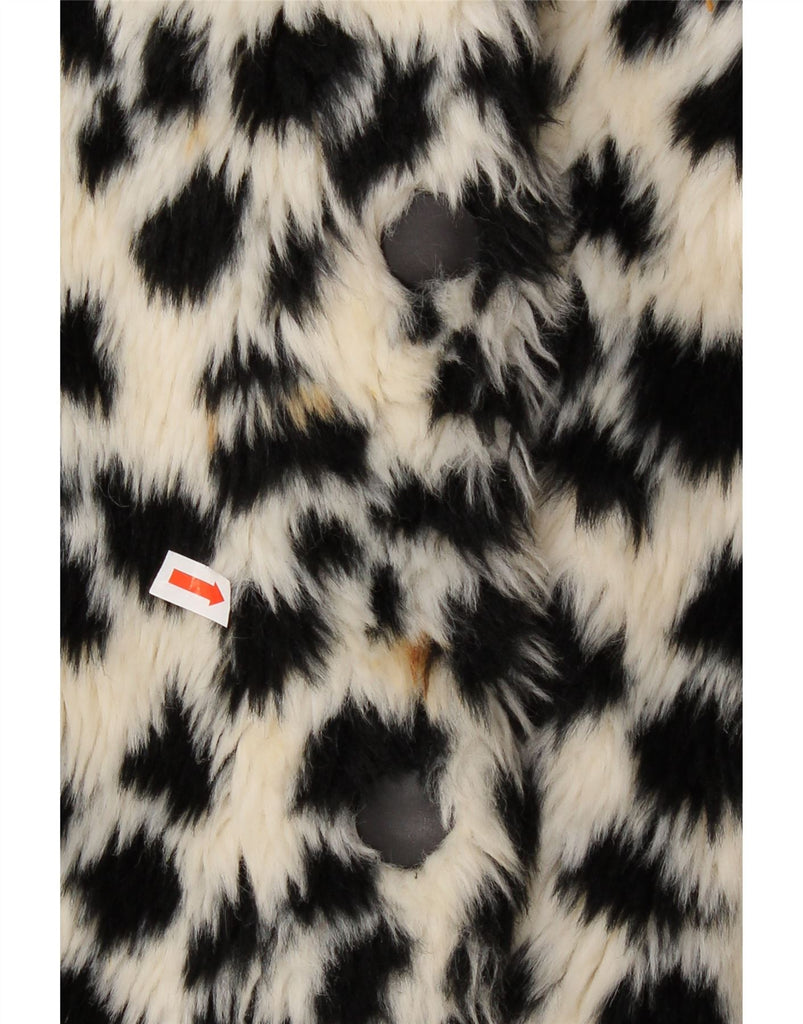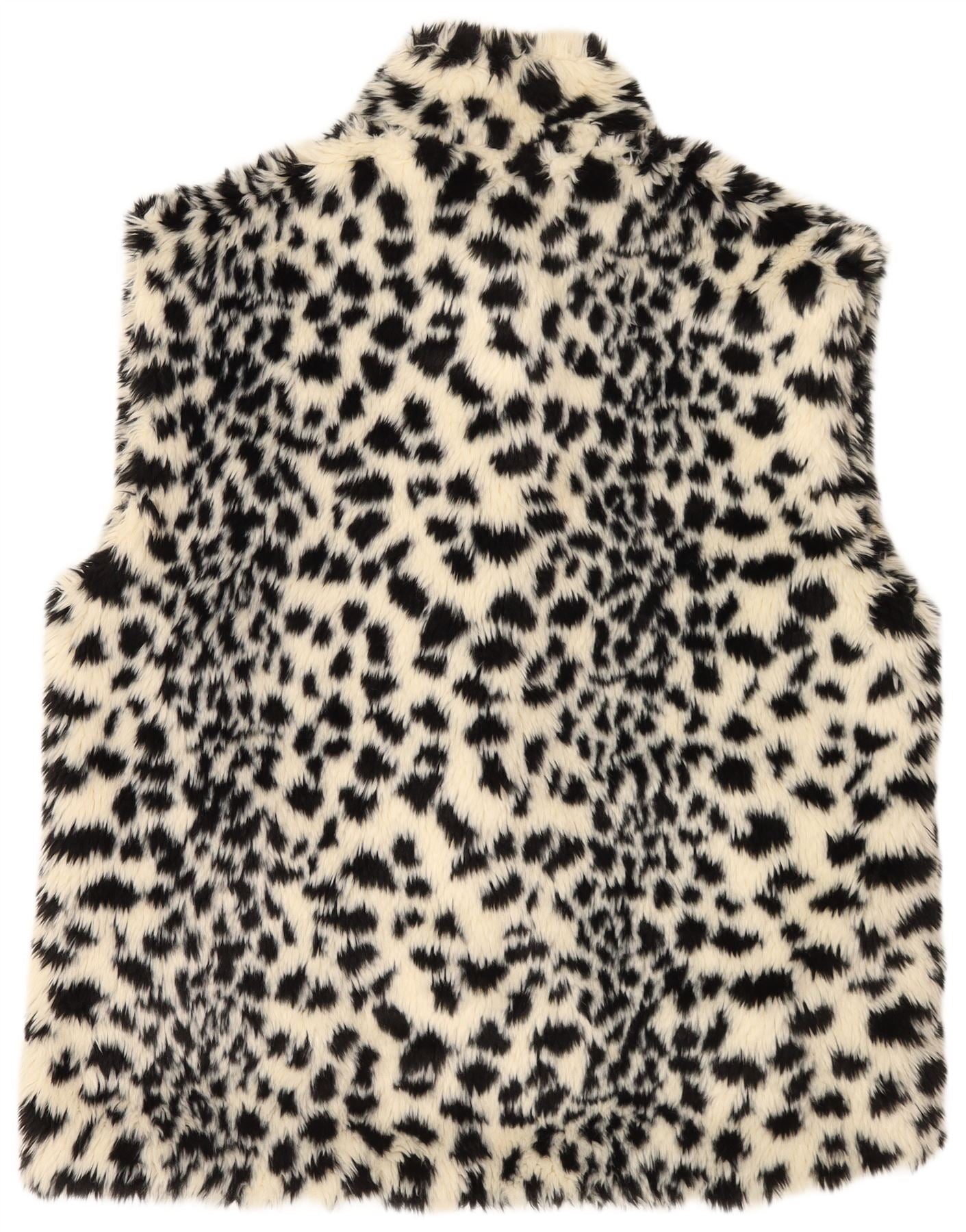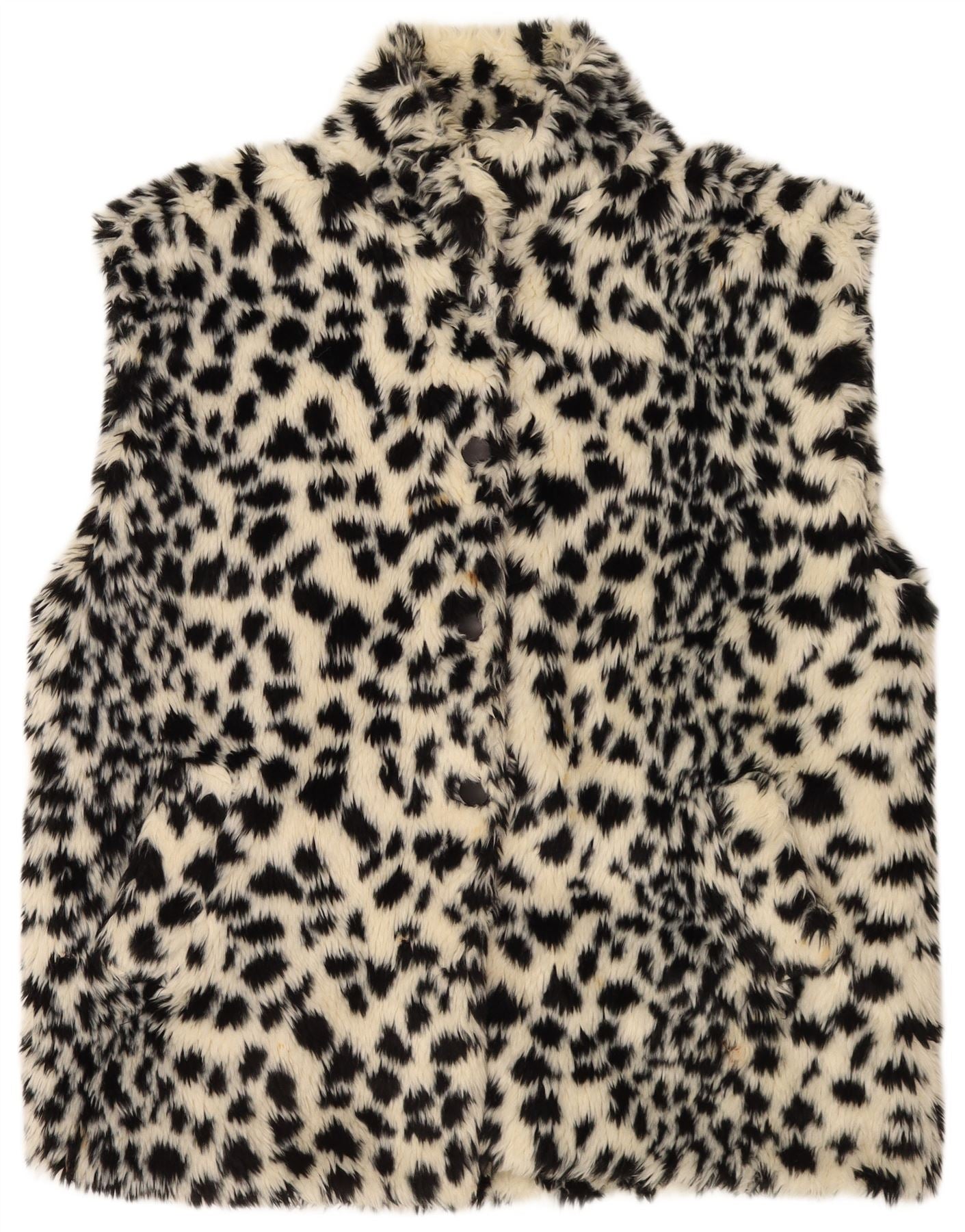 VINTAGE Womens Oversized Faux Fur Gilet US 2 XS White Animal Print