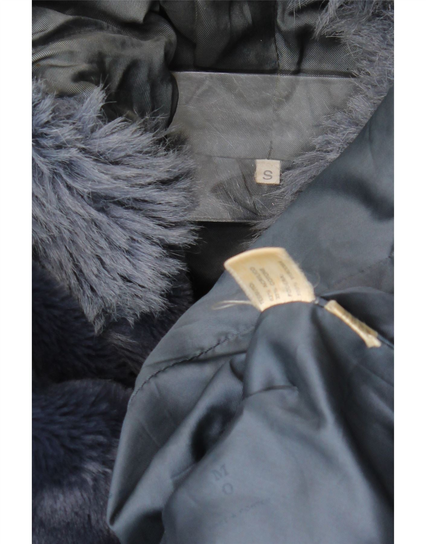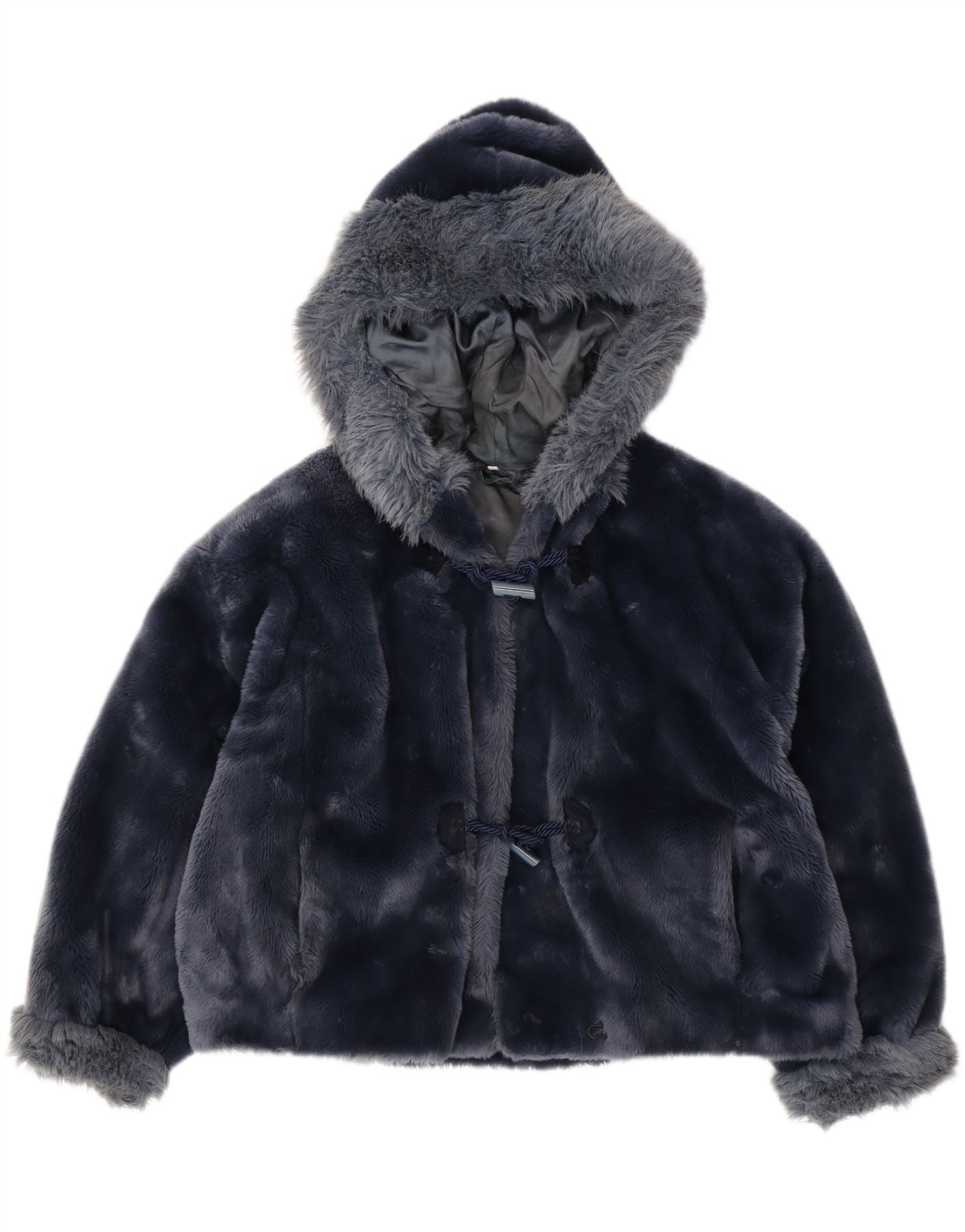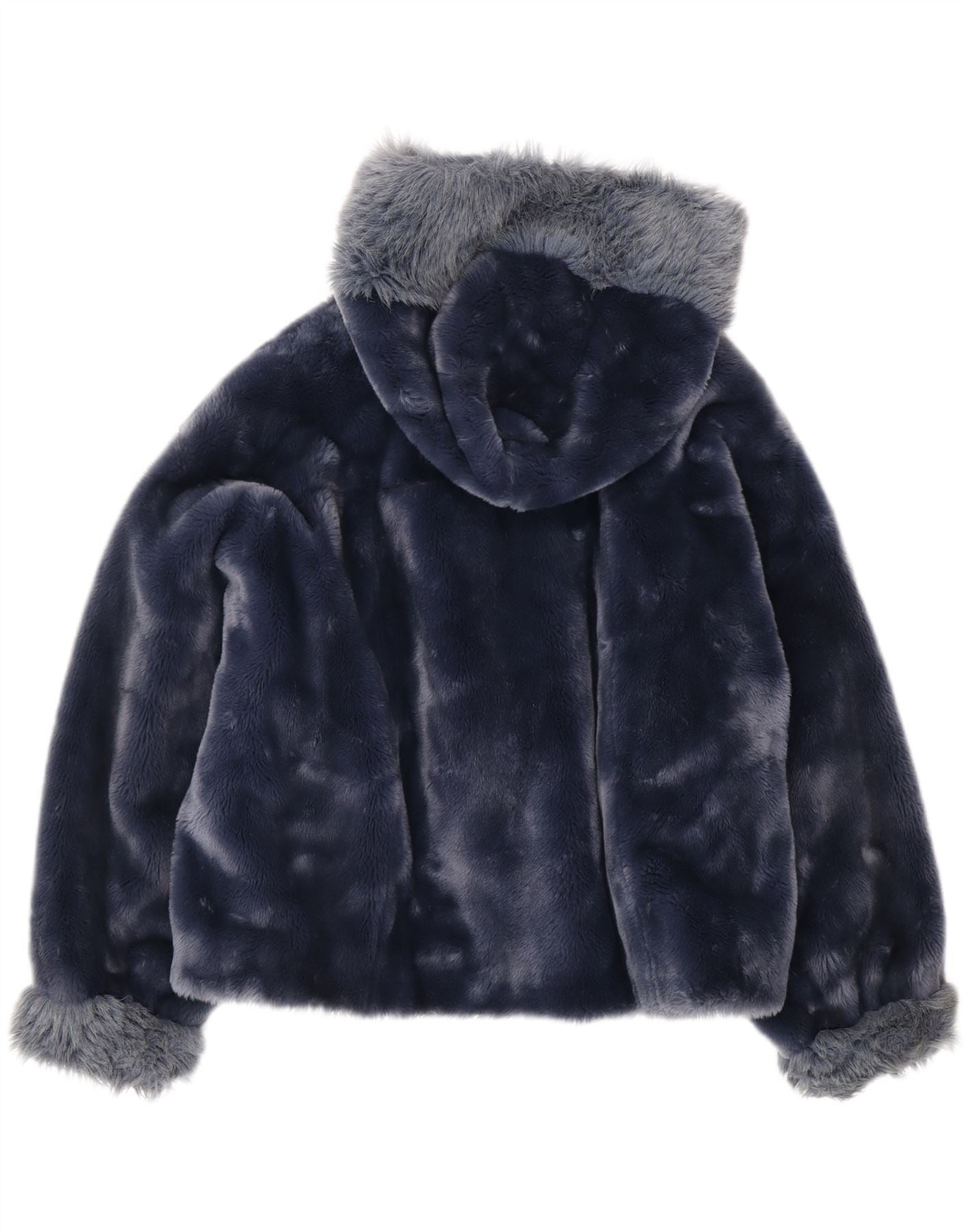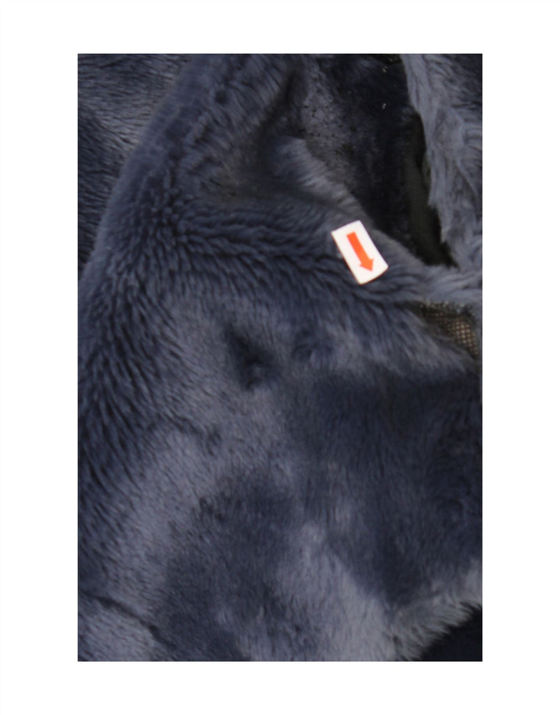 VINTAGE Womens Oversized Hooded Faux Fur Jacket UK 10 Small Navy Blue