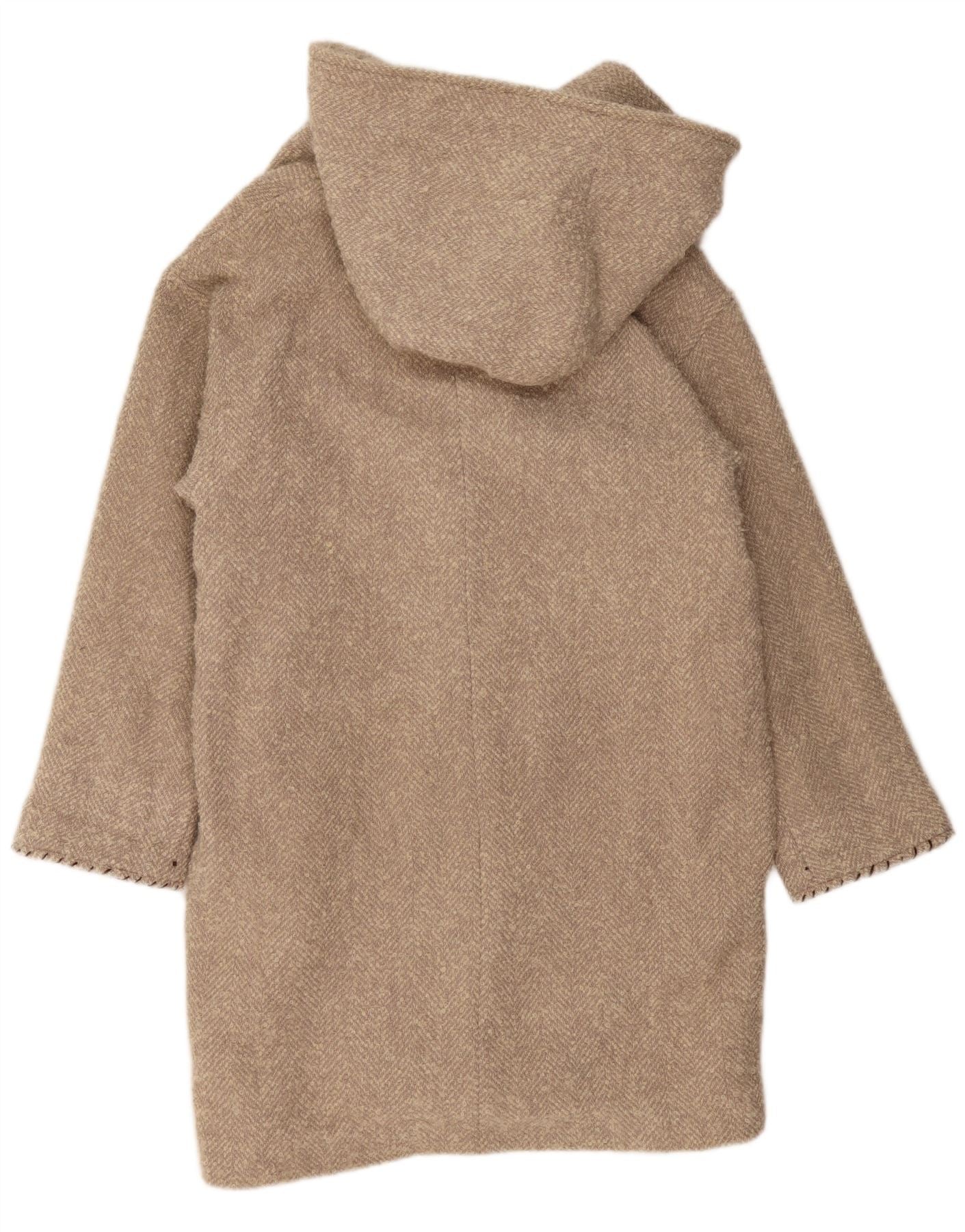 VINTAGE Womens Oversized Hooded Overcoat UK 10 Small Beige Herringbone