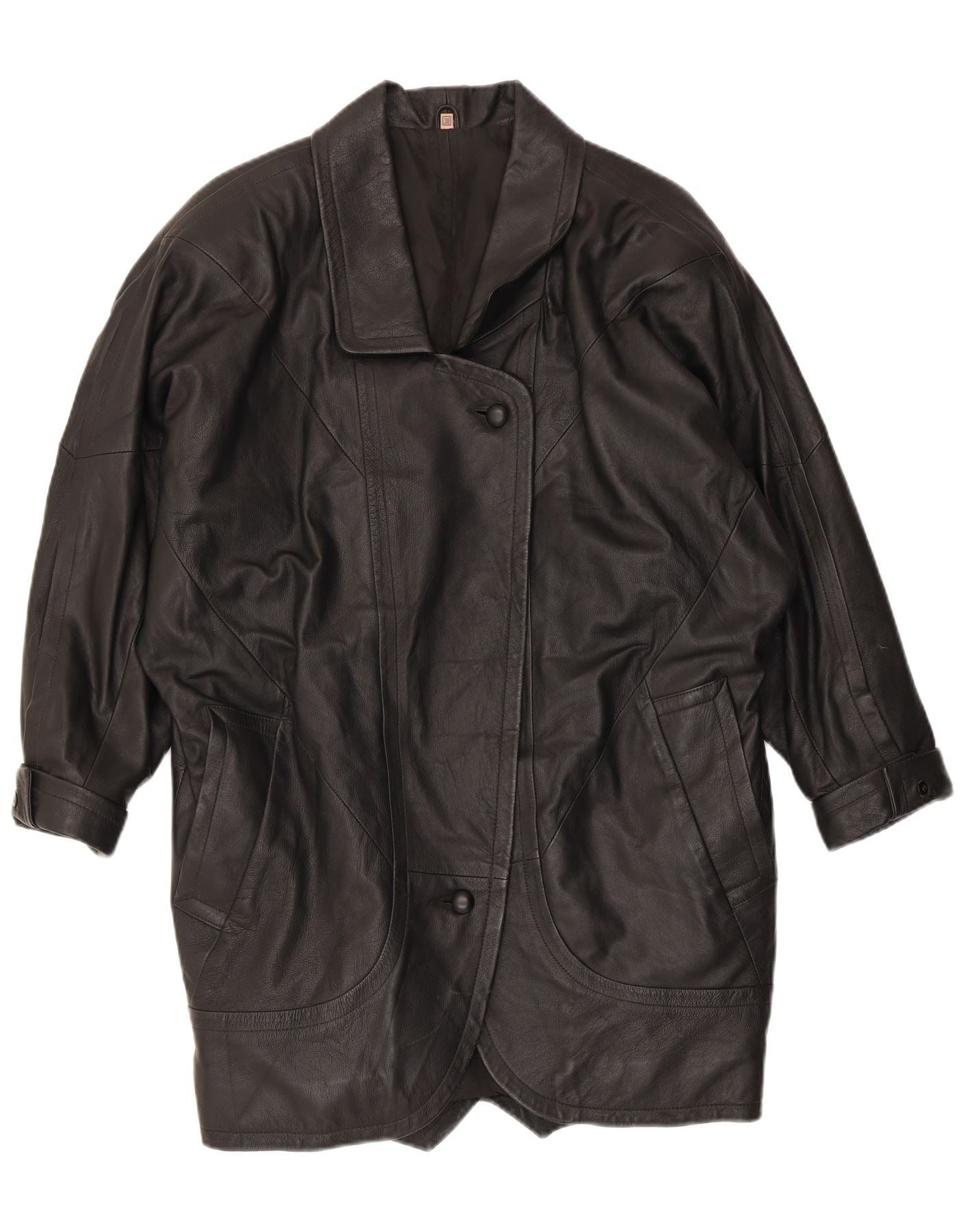 VINTAGE Womens Oversized Leather Coat EU 38 Medium Black Leather