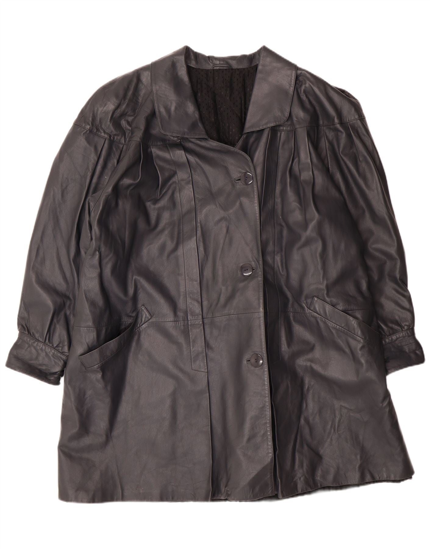 Vintage Womens Oversized Leather Coat IT 44 Medium Black Leather Classic