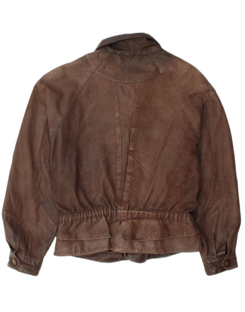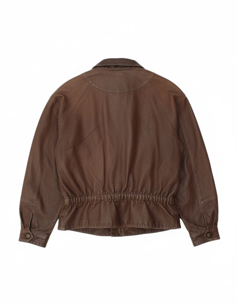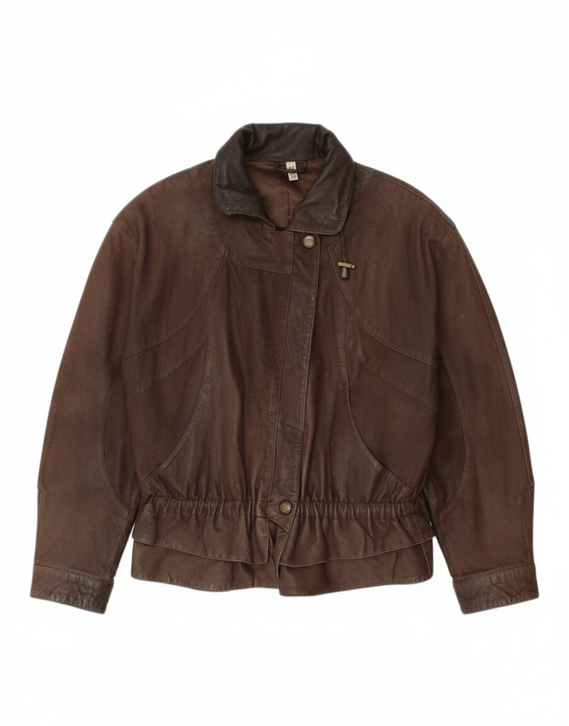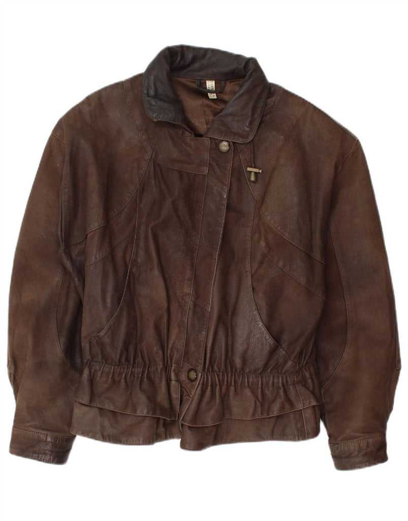 VINTAGE Womens Oversized Leather Jacket UK 12 Medium Brown Leather