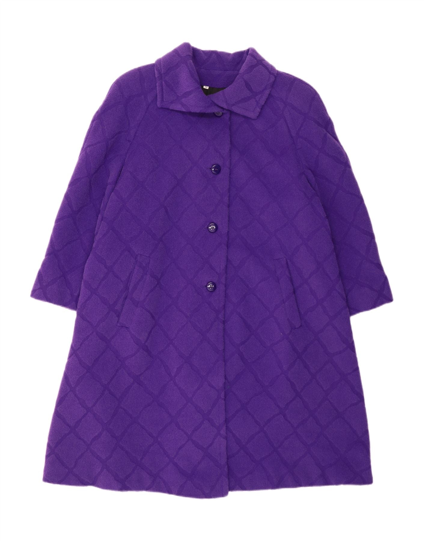 VINTAGE Womens Oversized Overcoat IT 44 Medium Purple Argyle/Diamond Wool