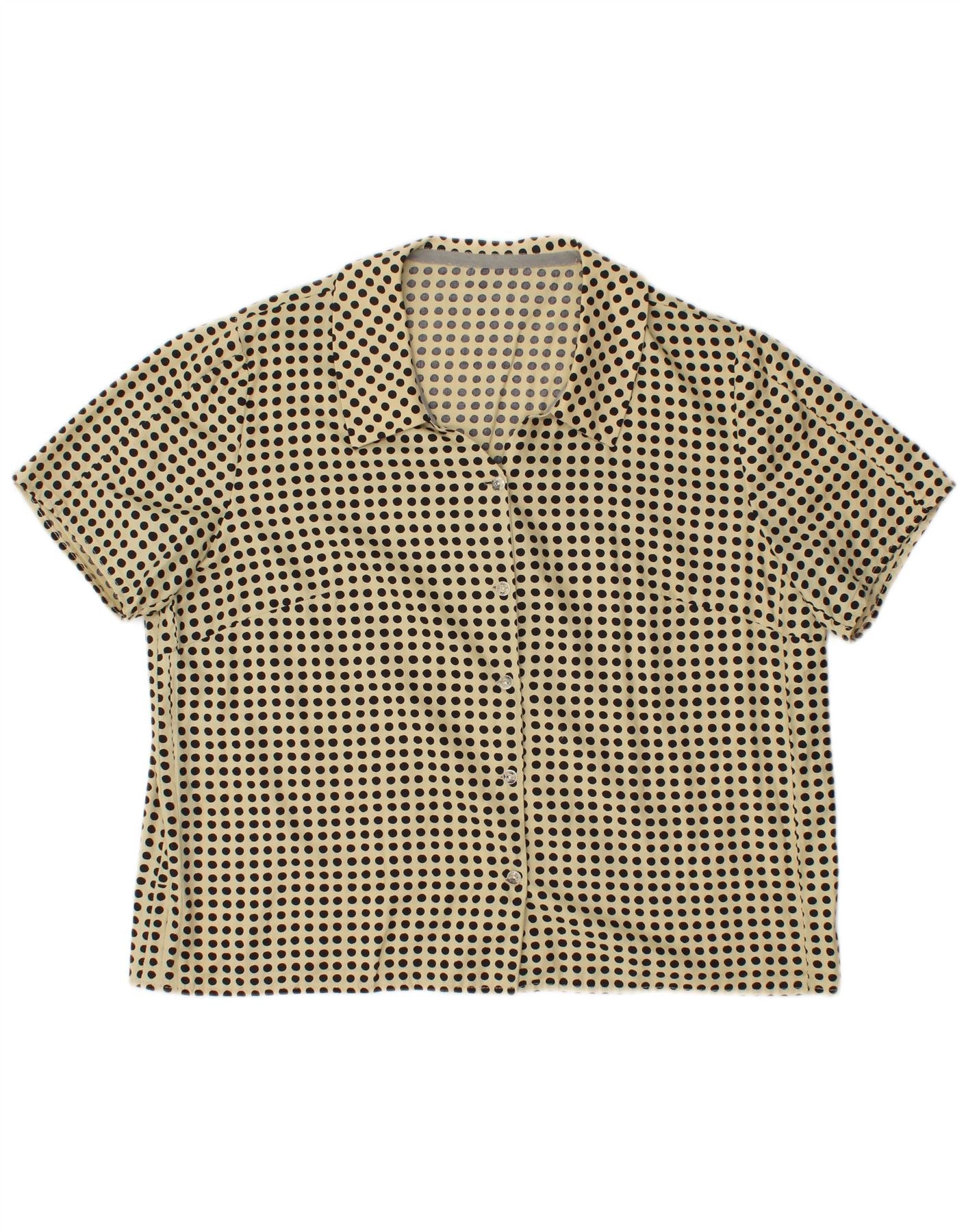 VINTAGE Womens Oversized Shirt Blouse UK 14 Medium Yellow Spotted