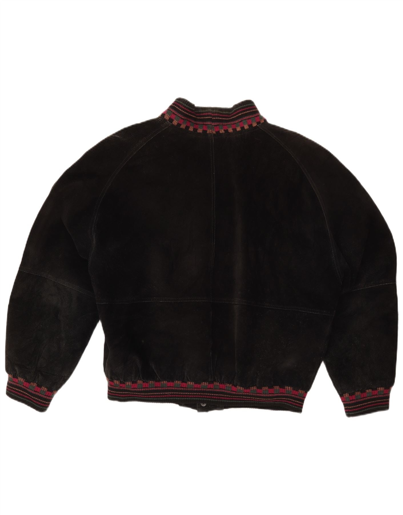 VINTAGE Womens Oversized Suede Jacket UK 18 XL Black Geometric Leather
