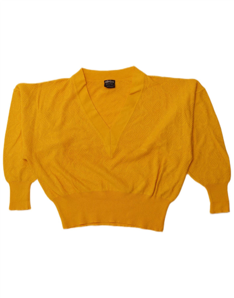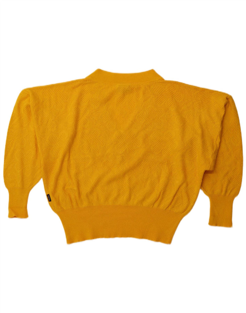 VINTAGE Womens Oversized V-Neck Jumper Sweater EU 40 Medium Yellow Cotton