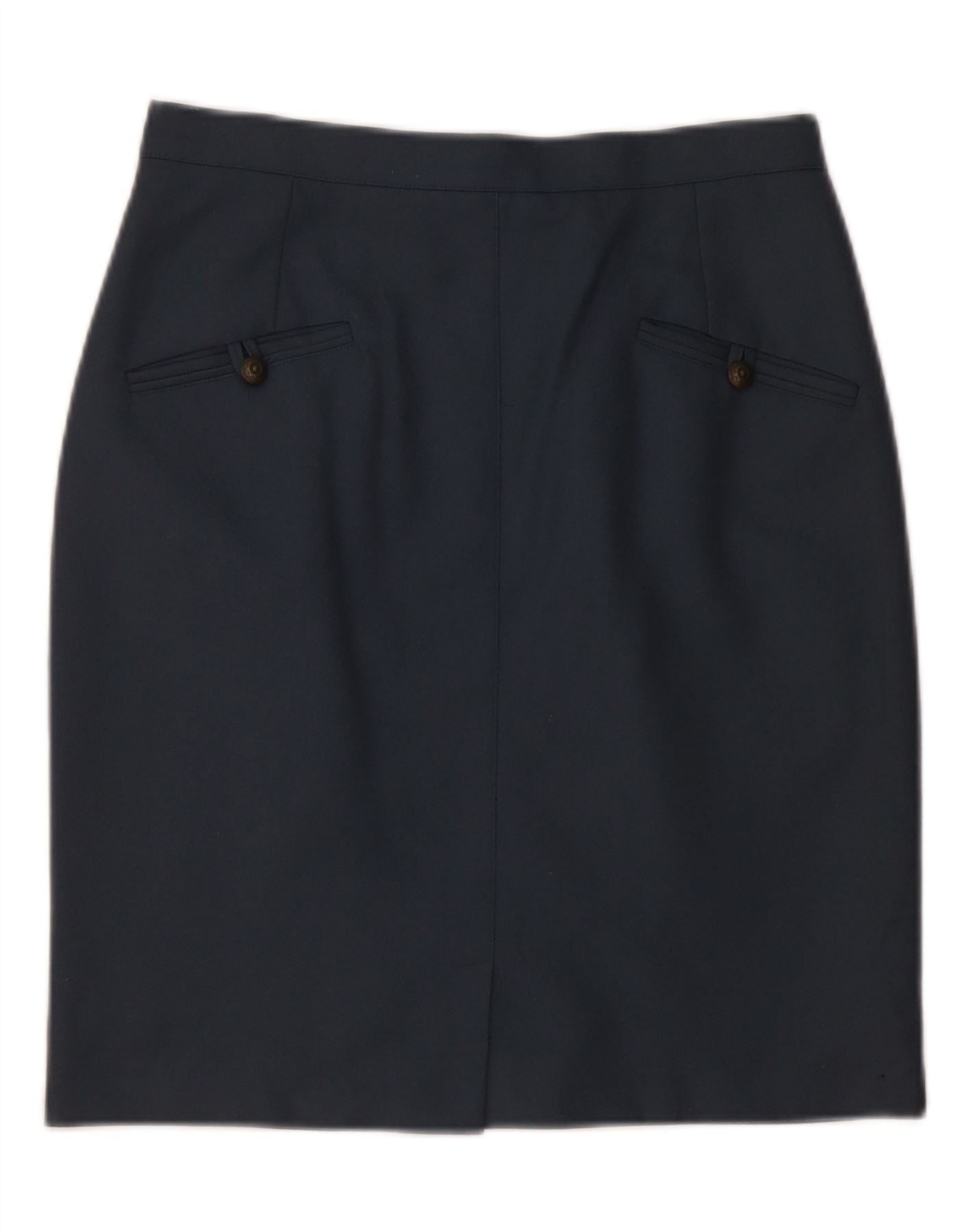 VINTAGE Womens Pencil Skirt Medium W28 Navy Blue Wool