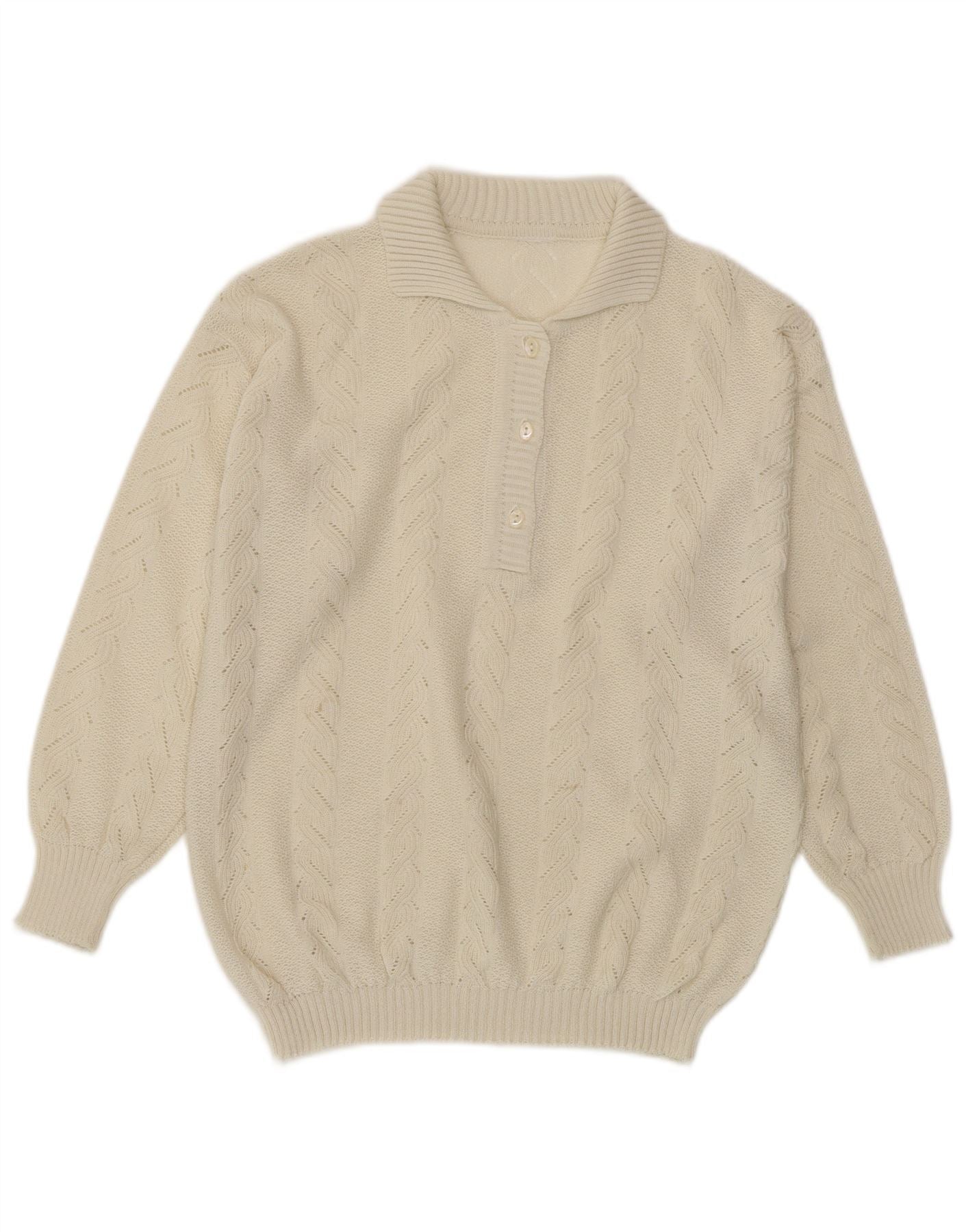 VINTAGE Womens Polo Neck Jumper Sweater UK 14 Medium Off White
