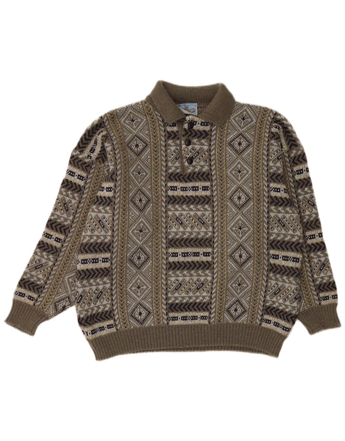 VINTAGE Womens Polo Neck Jumper Sweater UK 18 XL Multicoloured Fair Isle