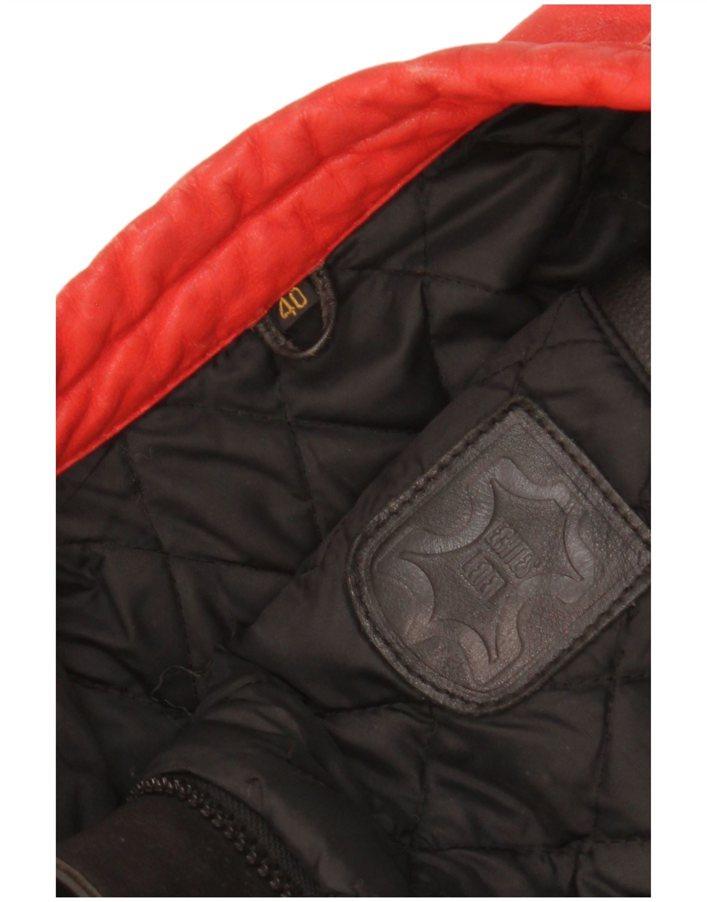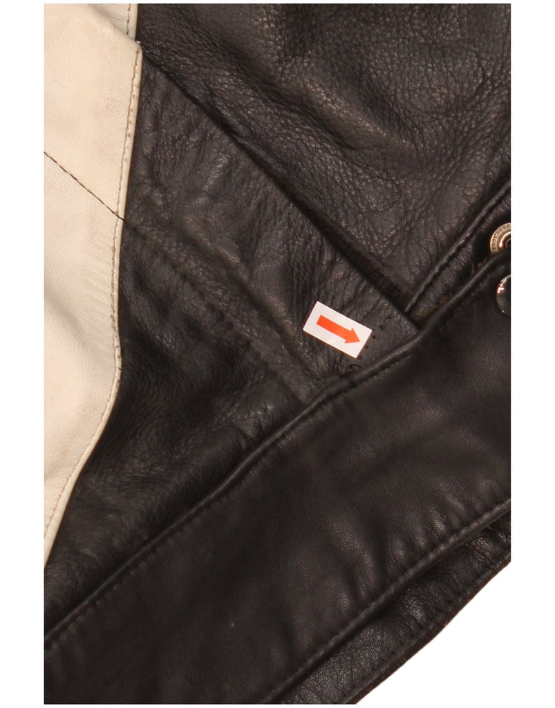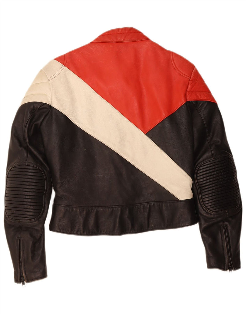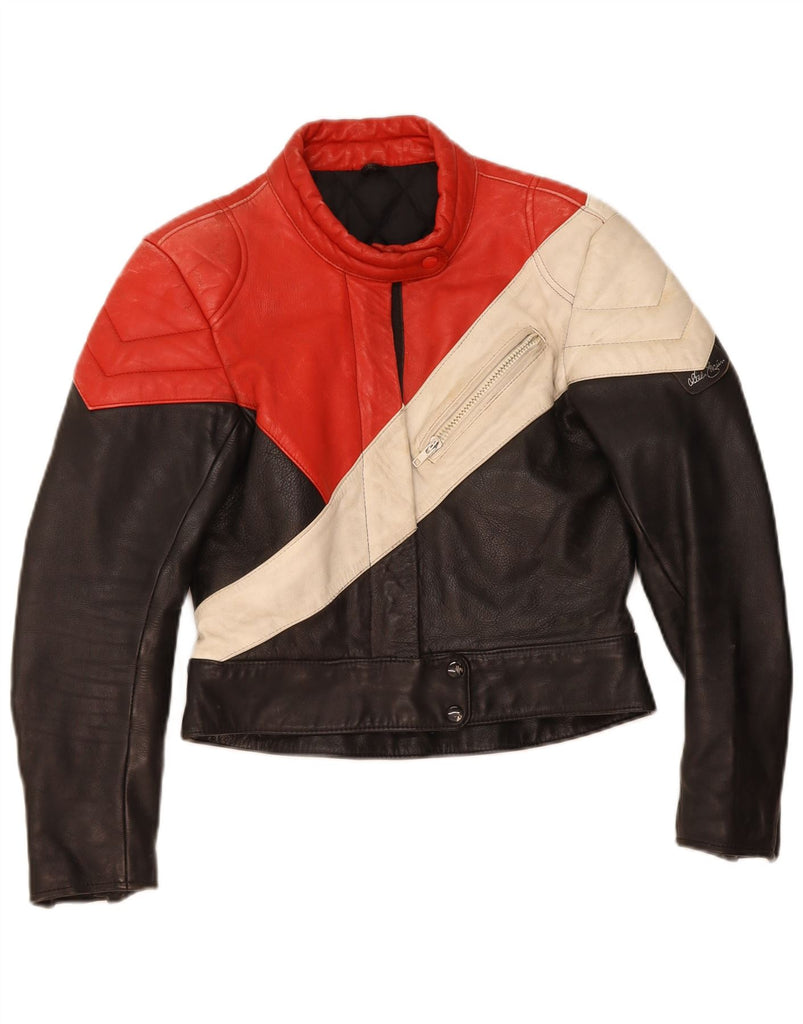VINTAGE Womens Racer Jacket EU 40 Medium Multicoloured Colourblock Leather