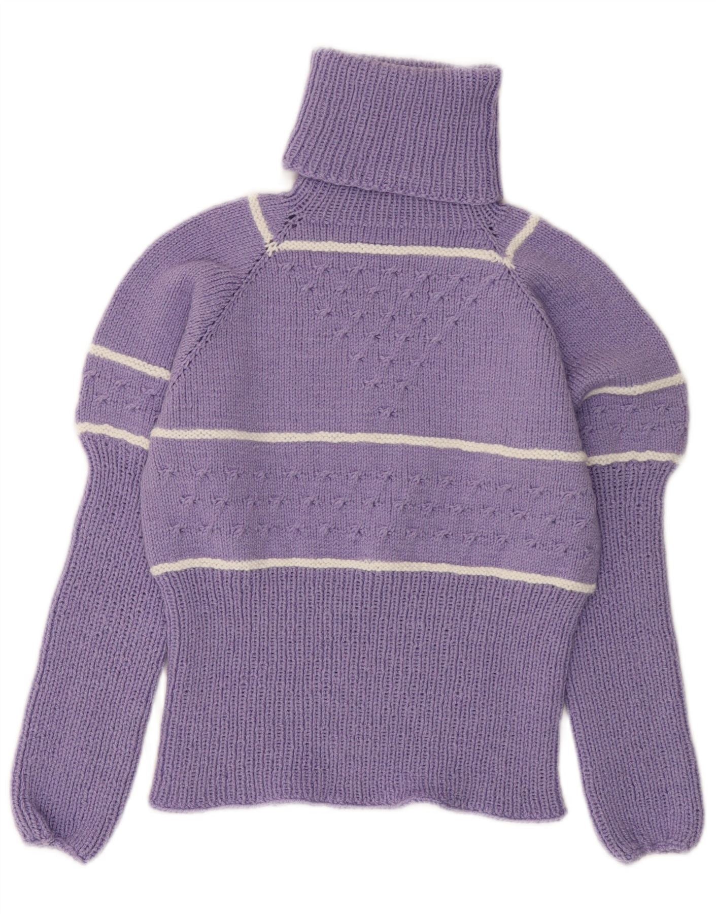 VINTAGE Womens Roll Neck Jumper Sweater UK 10 Small Purple Striped
