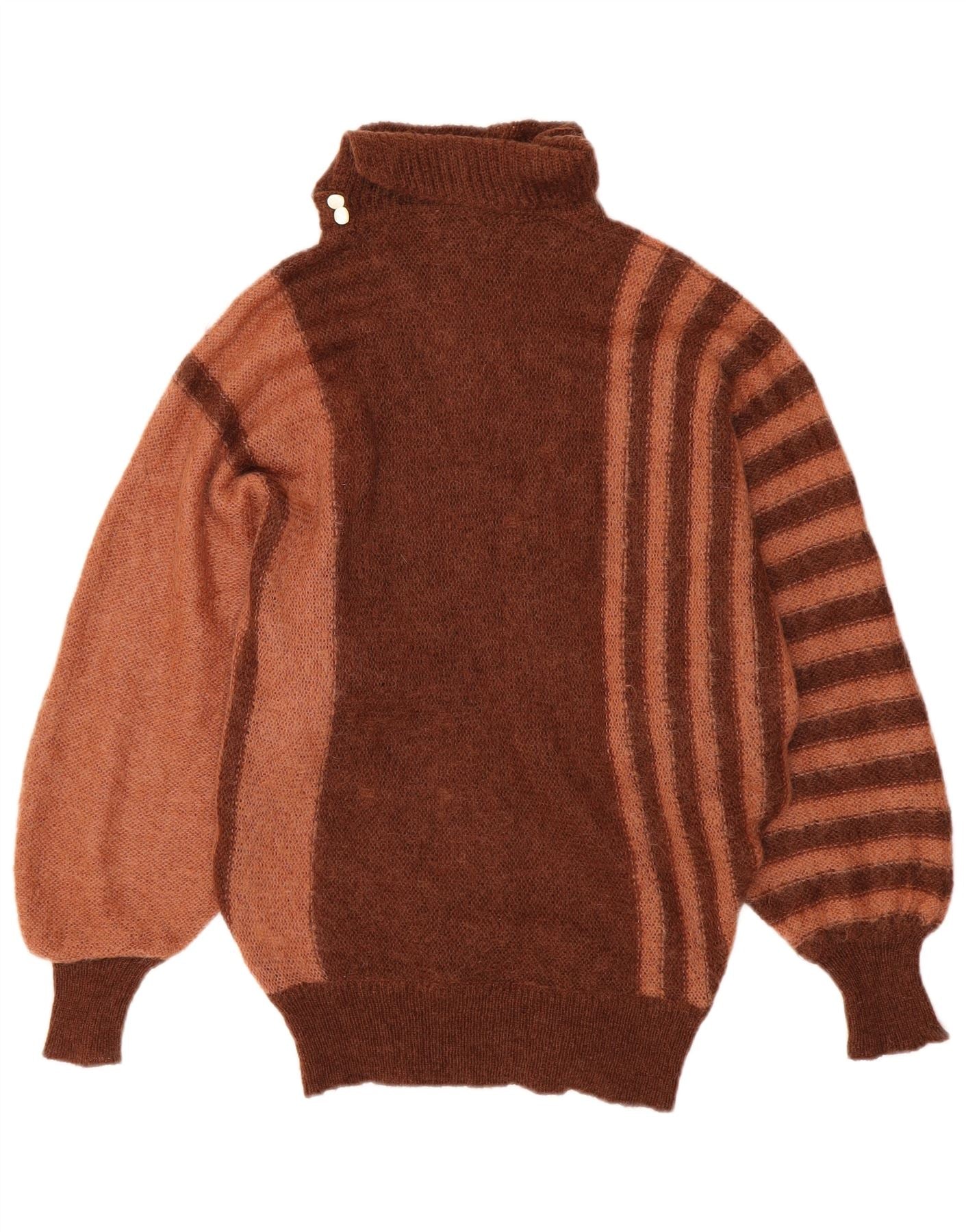 VINTAGE Womens Roll Neck Jumper Sweater UK 14 Large Brown Striped Mohair