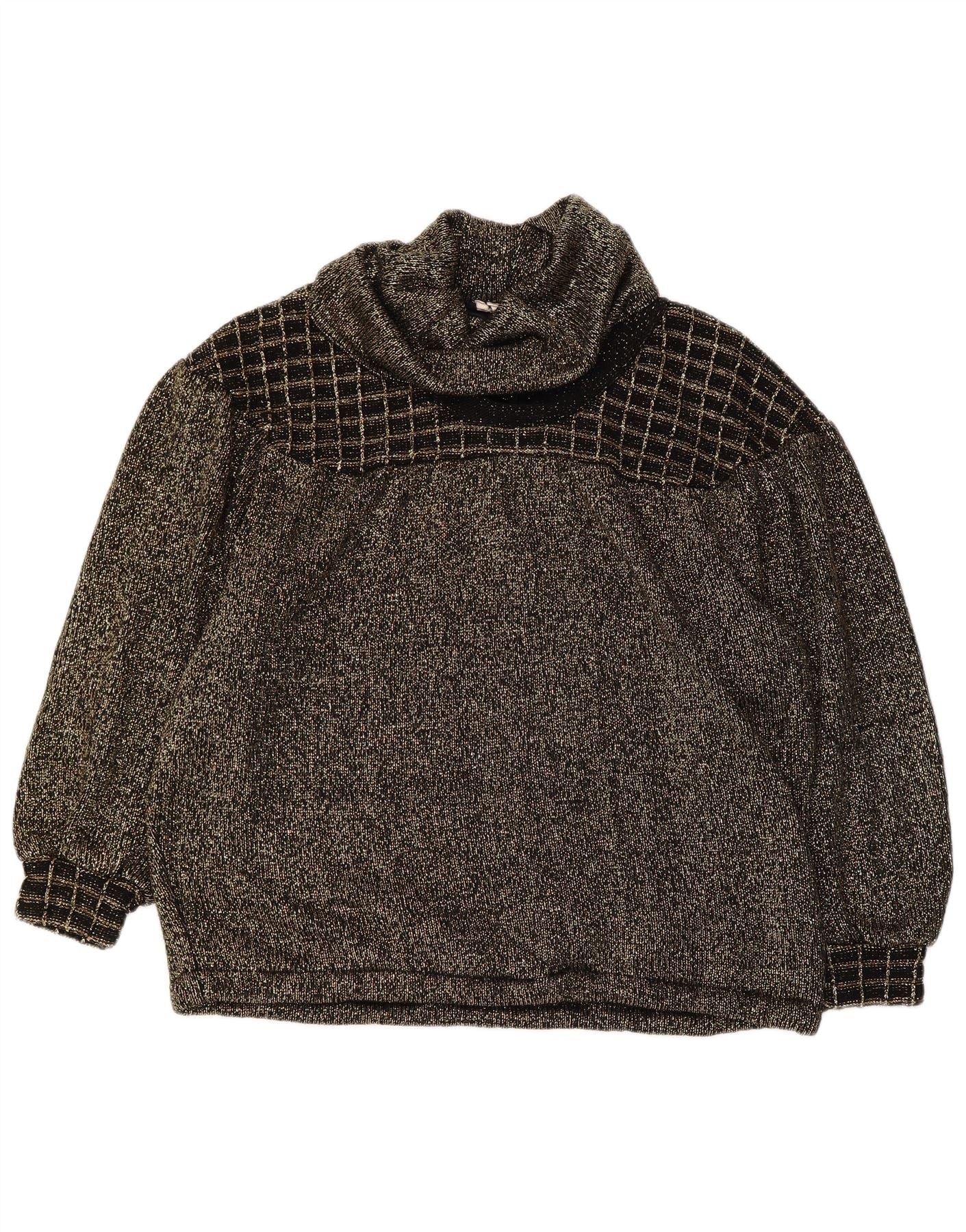 VINTAGE Womens Roll Neck Jumper Sweater UK 14 Medium Gold Flecked