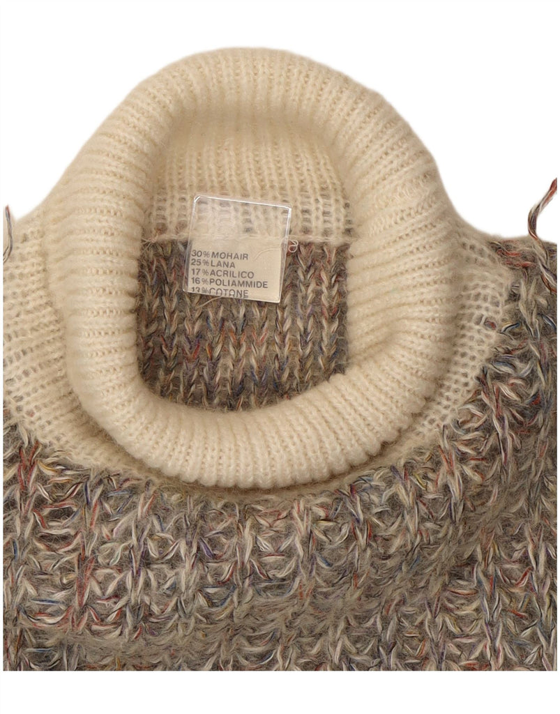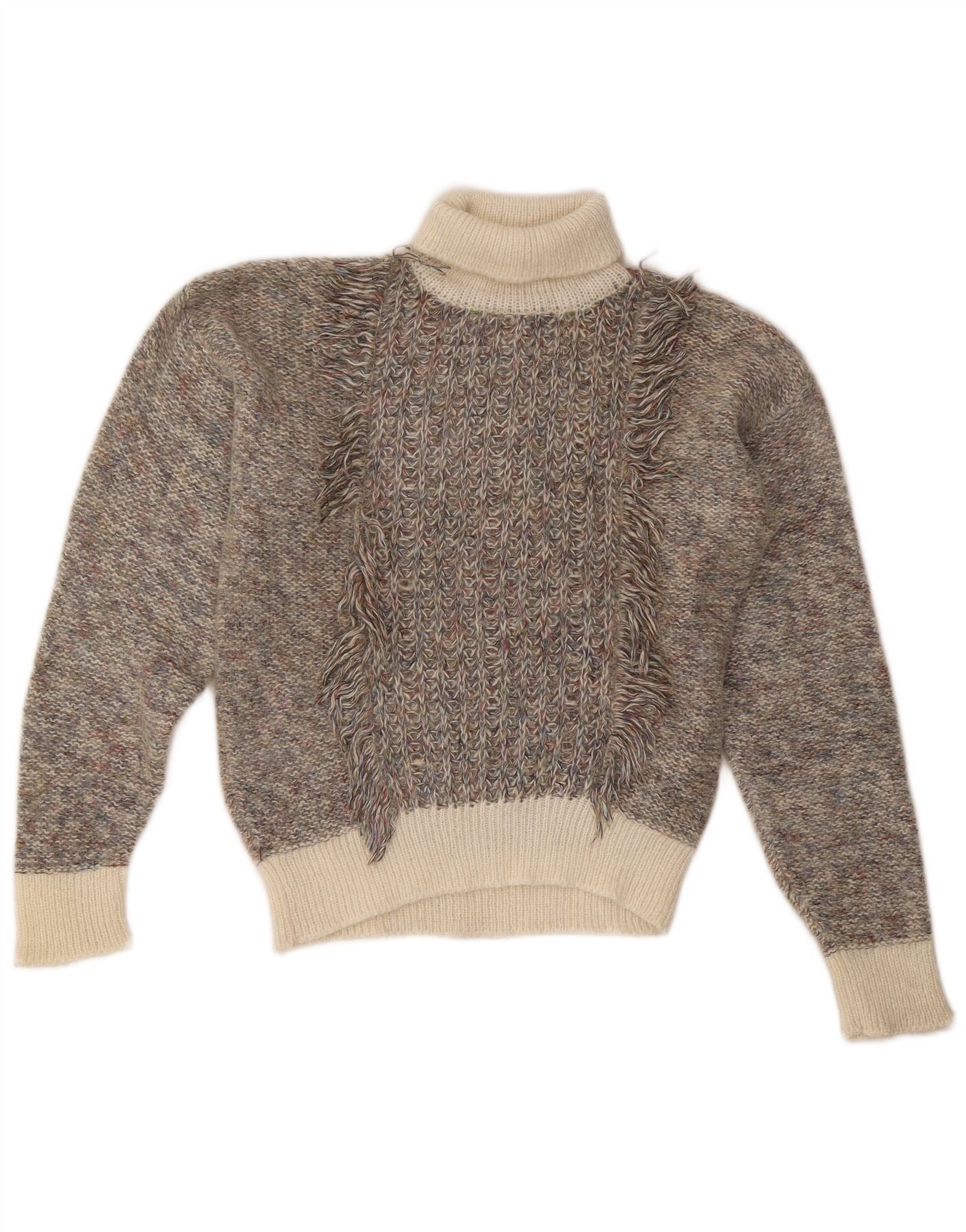 VINTAGE Womens Roll Neck Jumper Sweater UK 14 Medium Grey Colourblock
