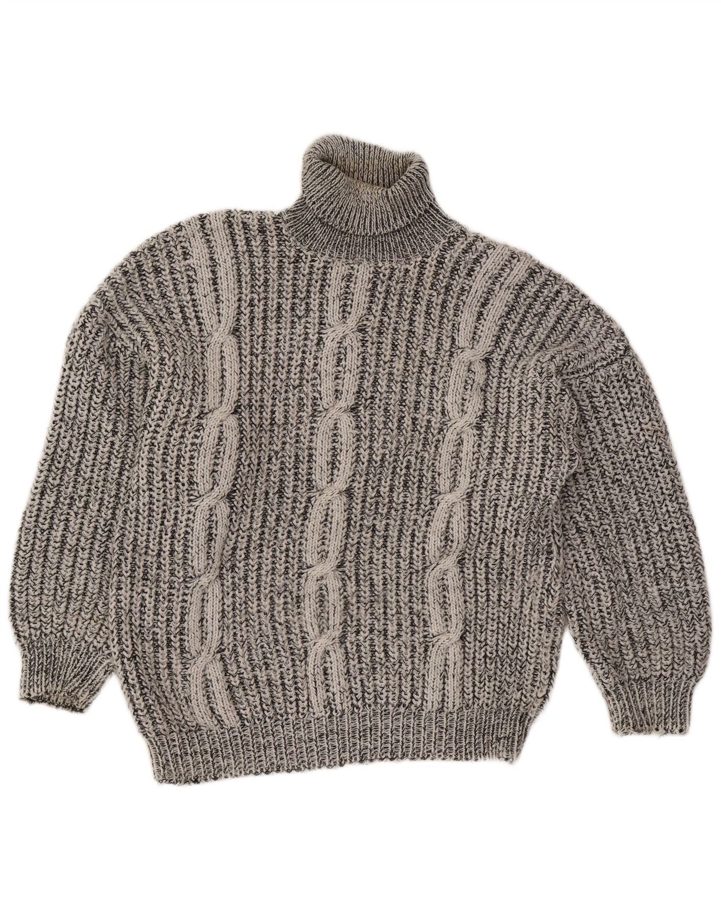 - AI Description: This Vintage womens Roll Neck Jumper Sweater is crafted from a heavyweight knit fabric, offering exceptional comfort. Its flecked grey texture provides visual depth. The cosy roll neck and long sleeves ensure warmth. It features a relaxed, loose fit, perfect for layering. The pullover design is enhanced by a distinctive cable knit pattern, adding classic detail. This winter style is both practical and chic.