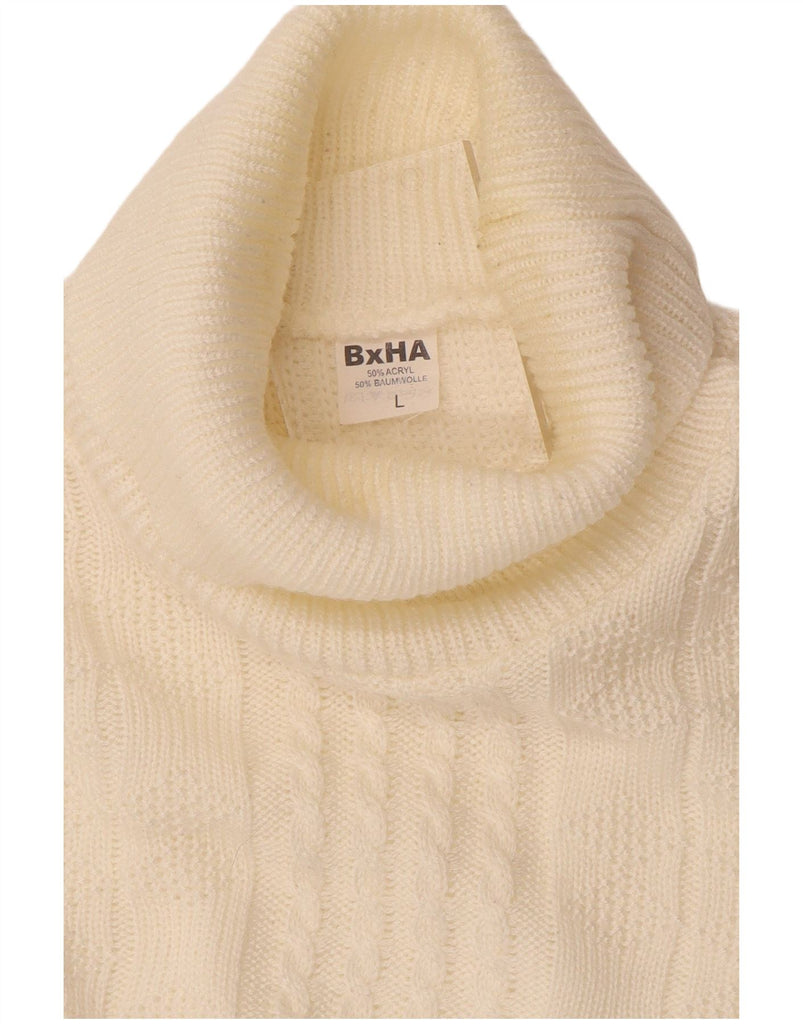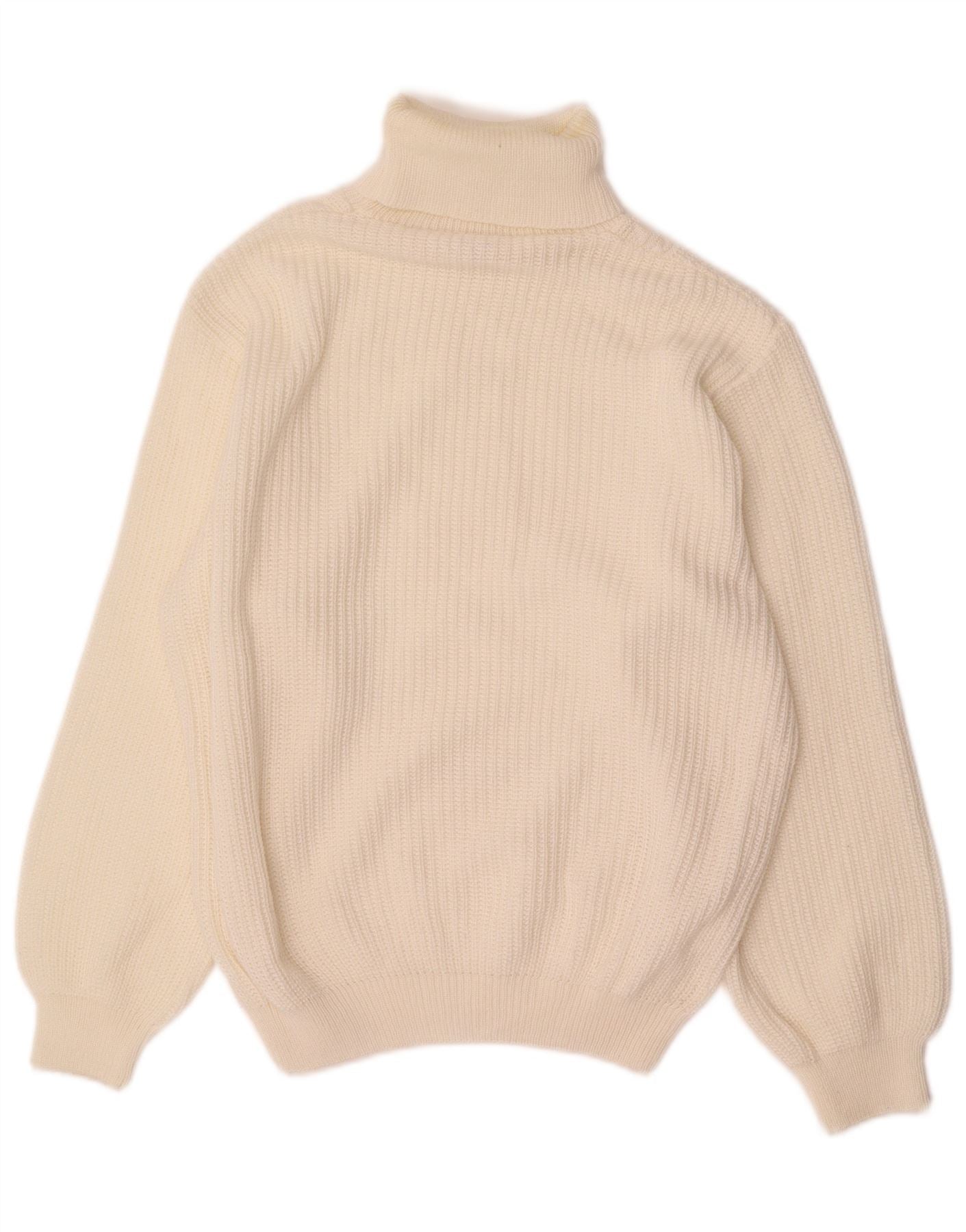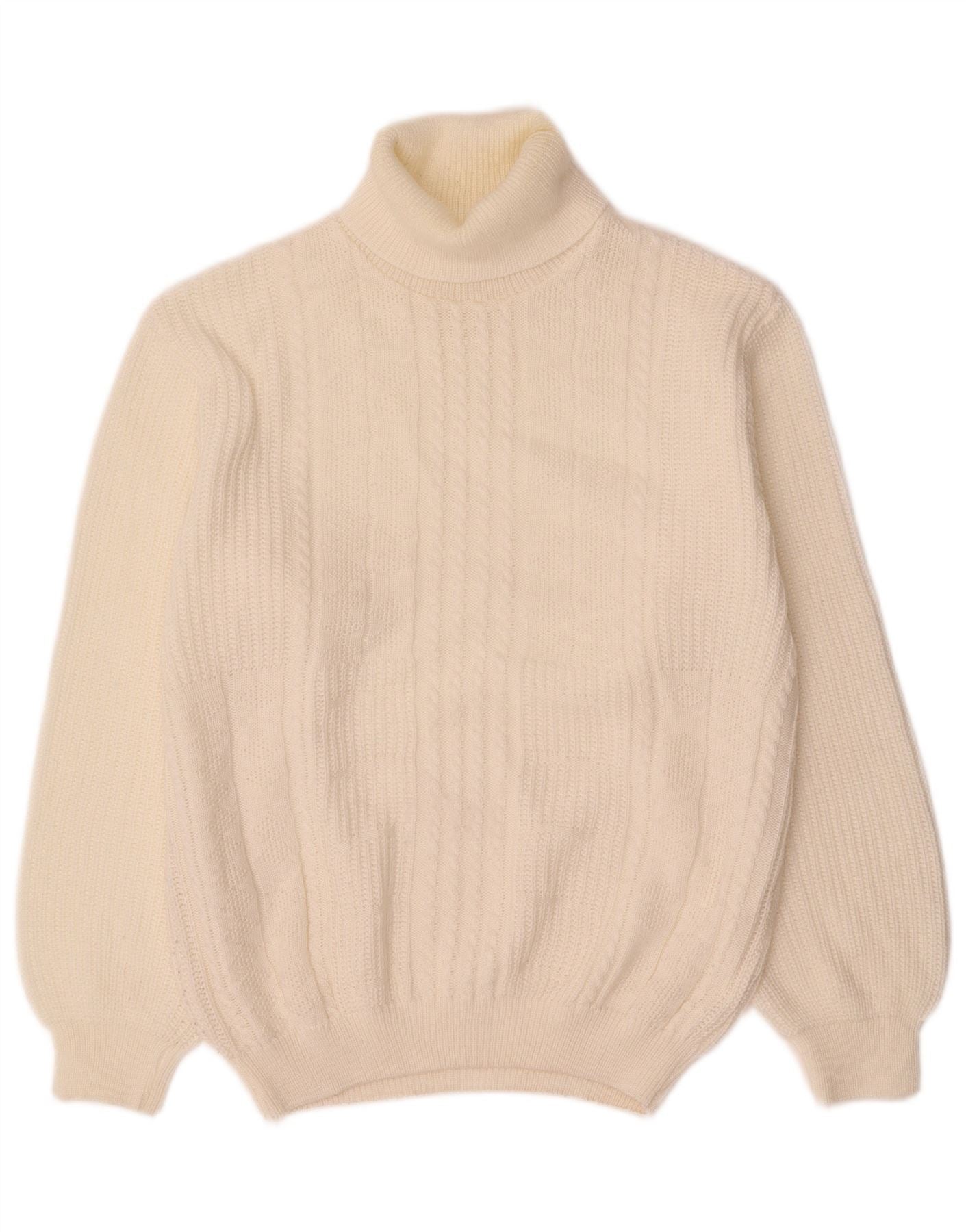 VINTAGE Womens Roll Neck Jumper Sweater UK 16 Large Off White Acrylic