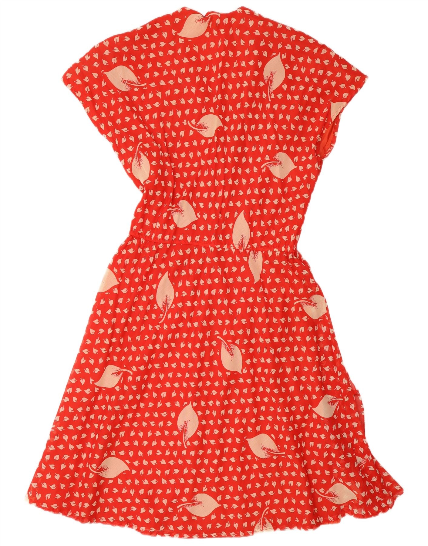Vintage Womens Ruffle Front A-Line Dress ITB 44 Medium Red Floral Retro