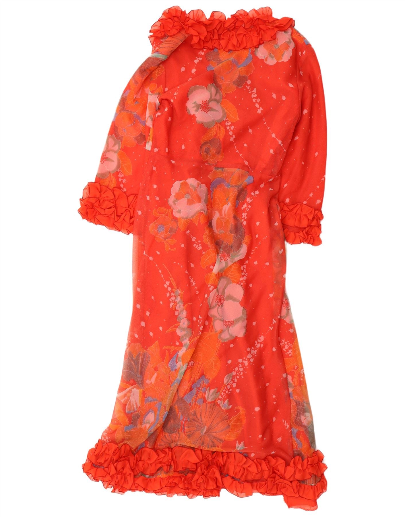 VINTAGE Womens Ruffle Robe Maxi Dress UK 12 Medium Red Floral