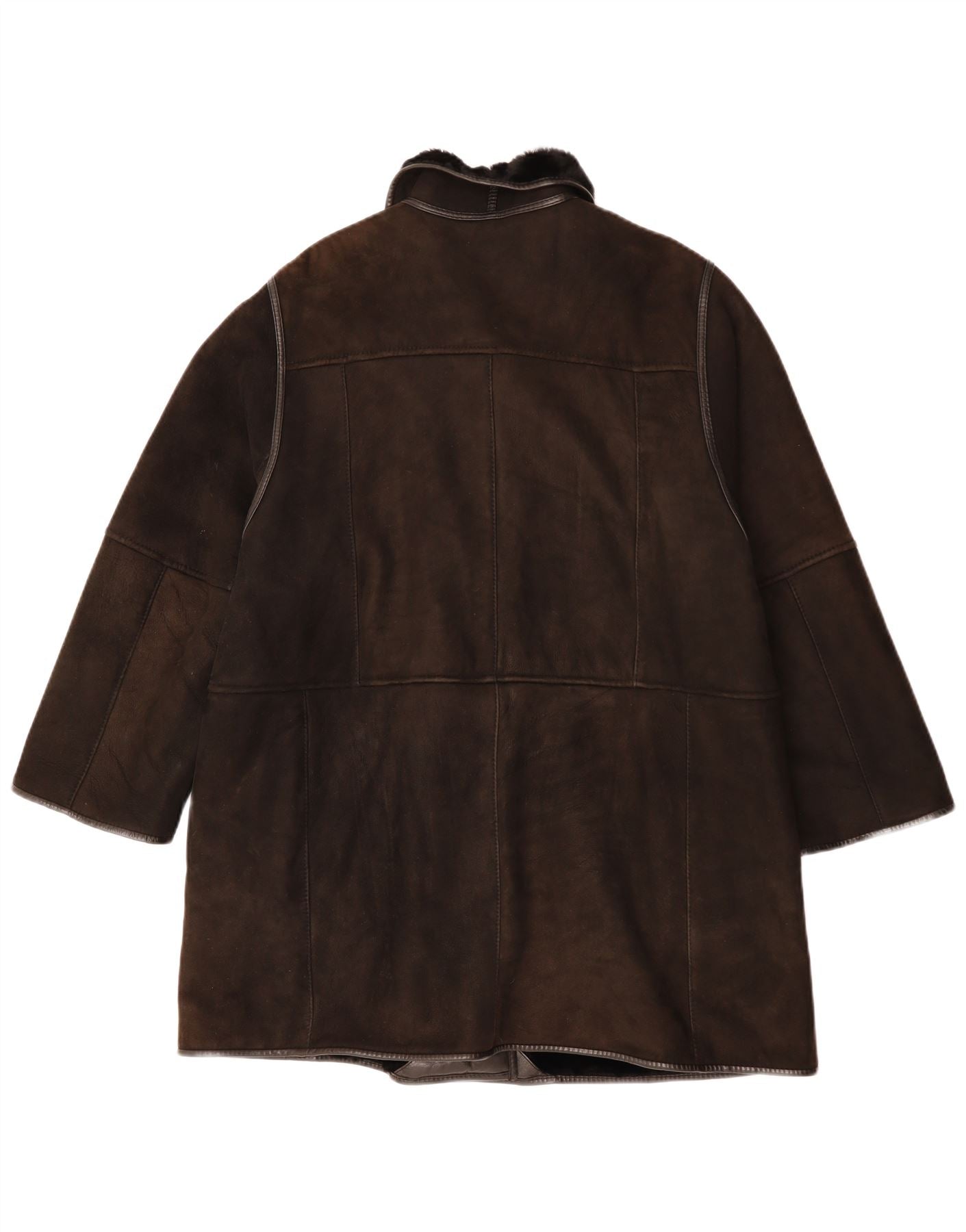 VINTAGE Womens Shearling Coat UK 14 Large Brown Leather