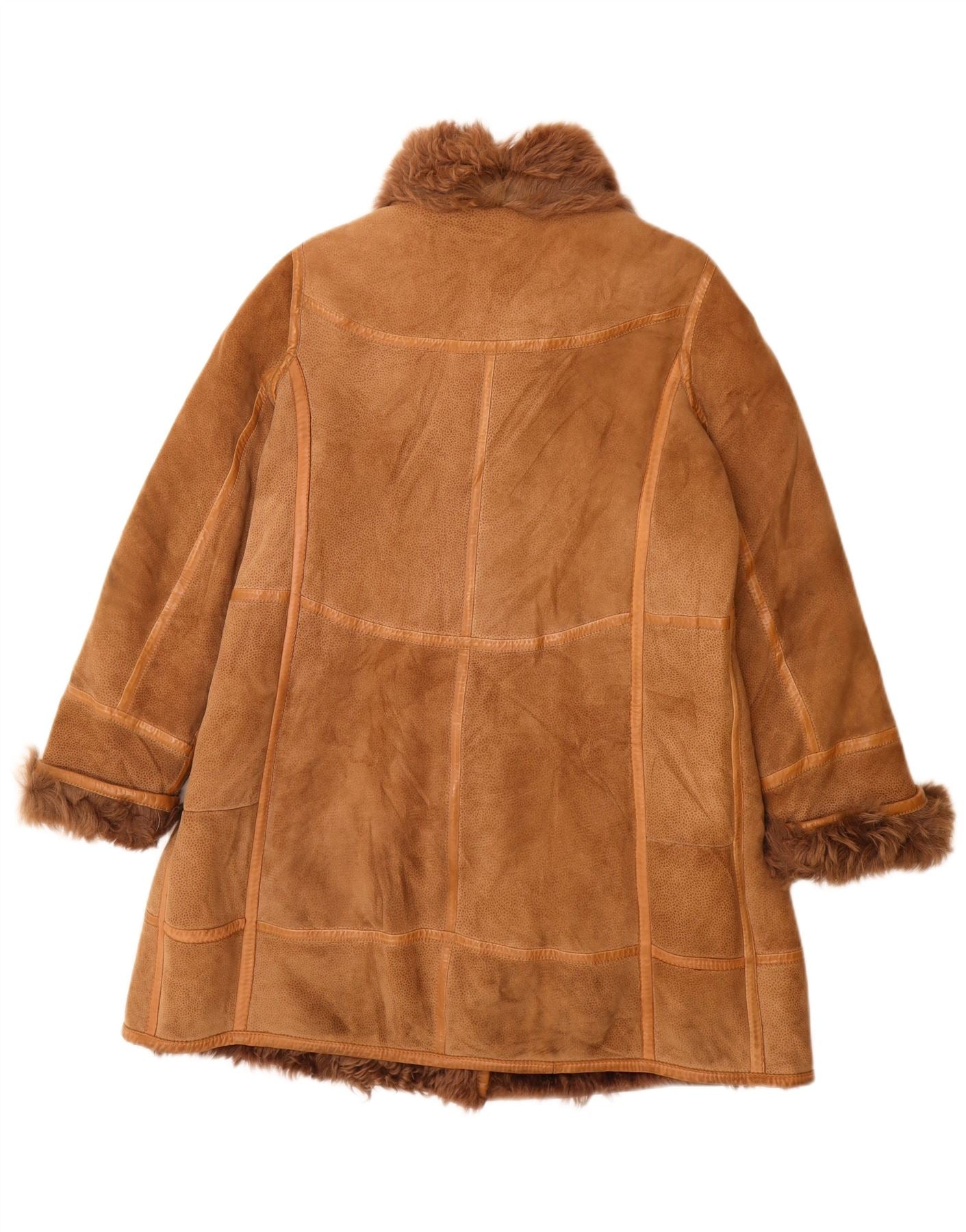 VINTAGE Womens Shearling Coat UK 16 Large Brown Animal Print