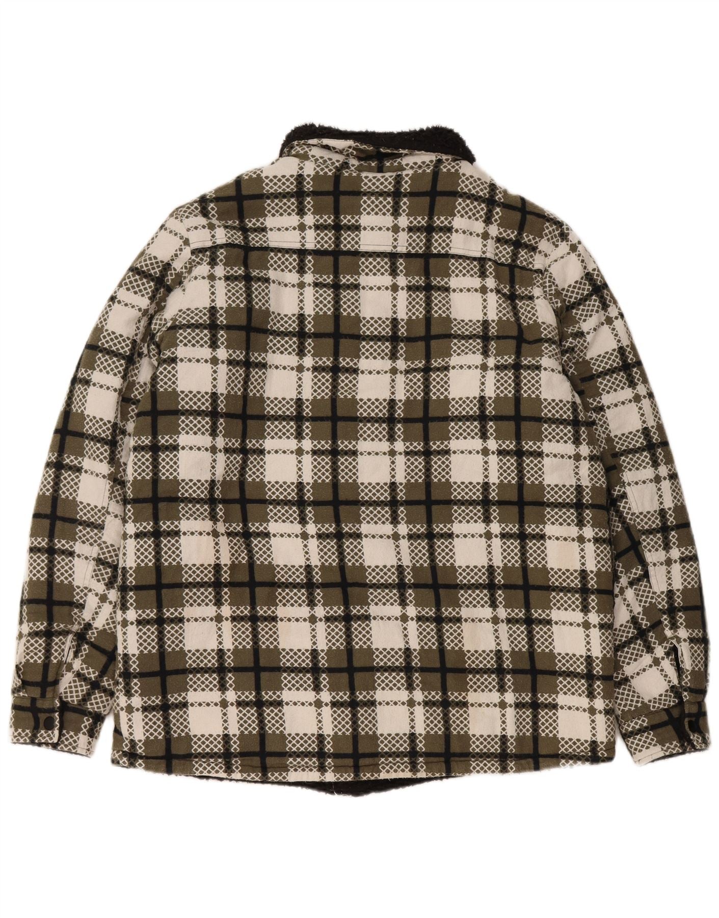 VINTAGE Womens Sherpa Jacket UK 16 Large Green Check