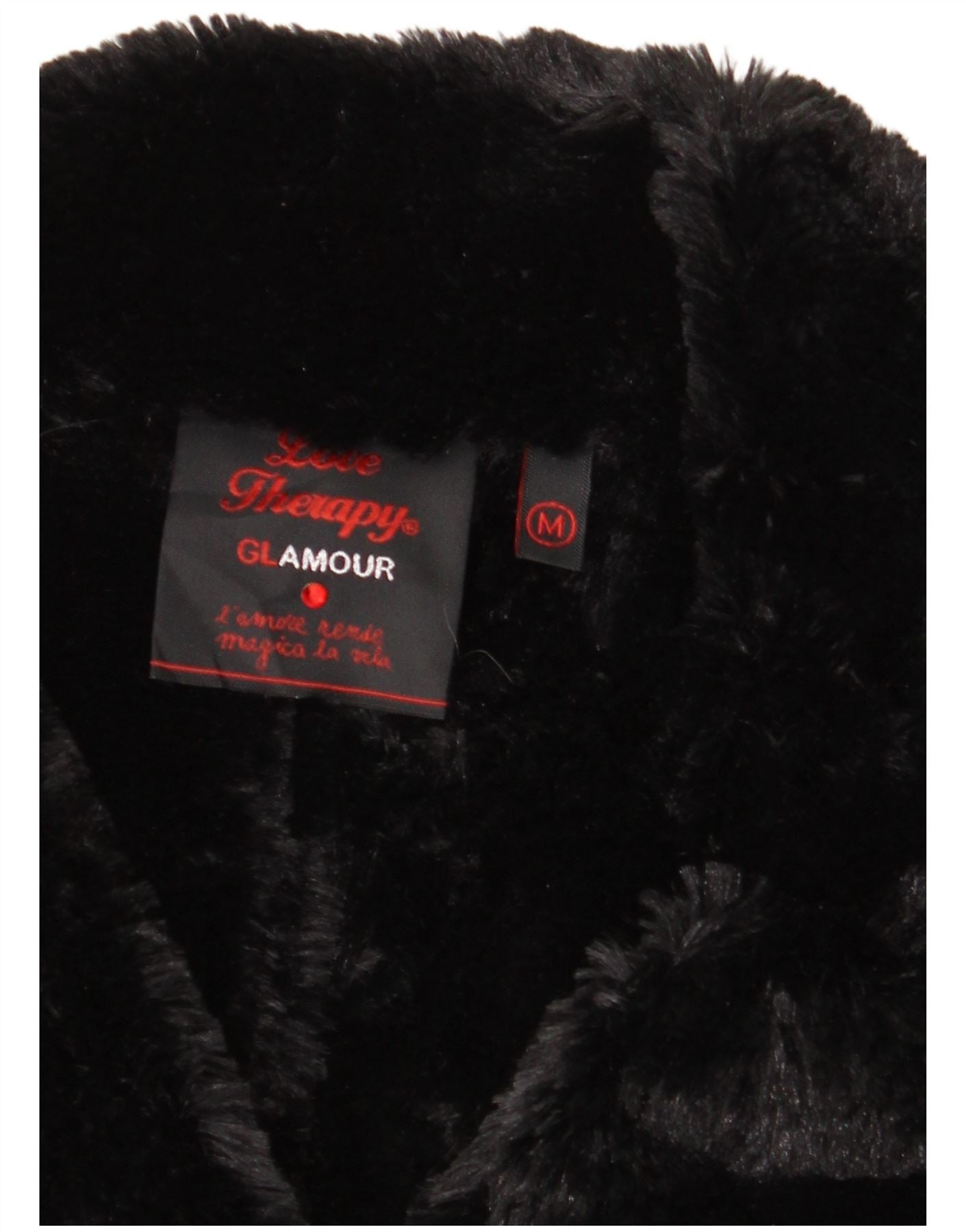 Vintage Womens Sherpa Overcoat UK 12 Medium Black