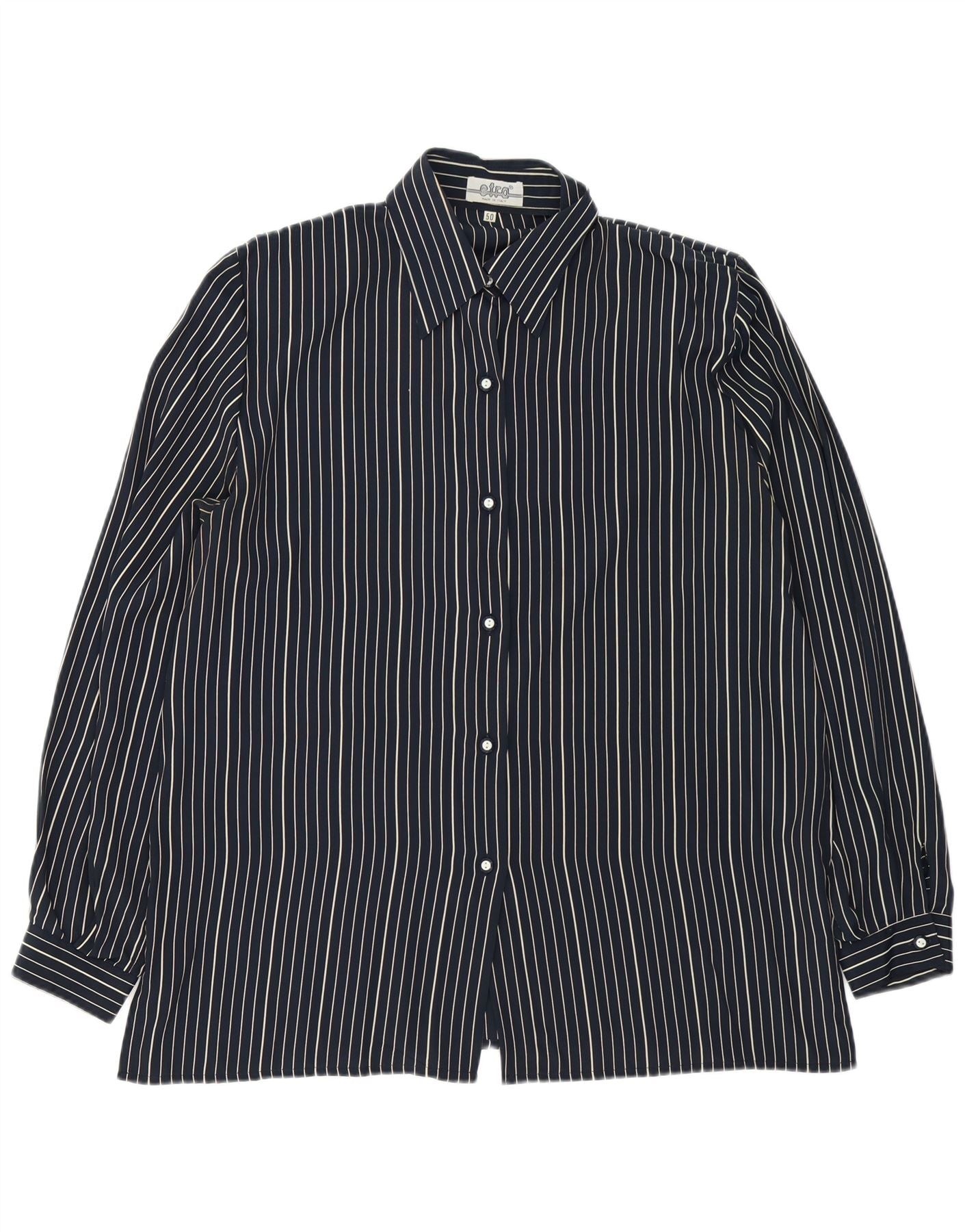 VINTAGE Womens Shirt Blouse IT 50 XL Navy Blue Pinstripe Silk