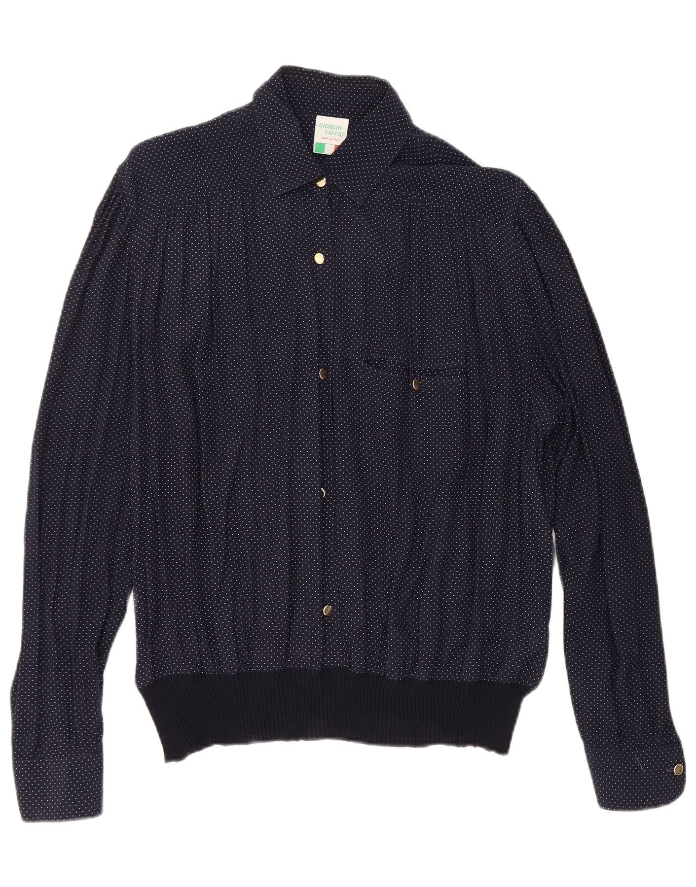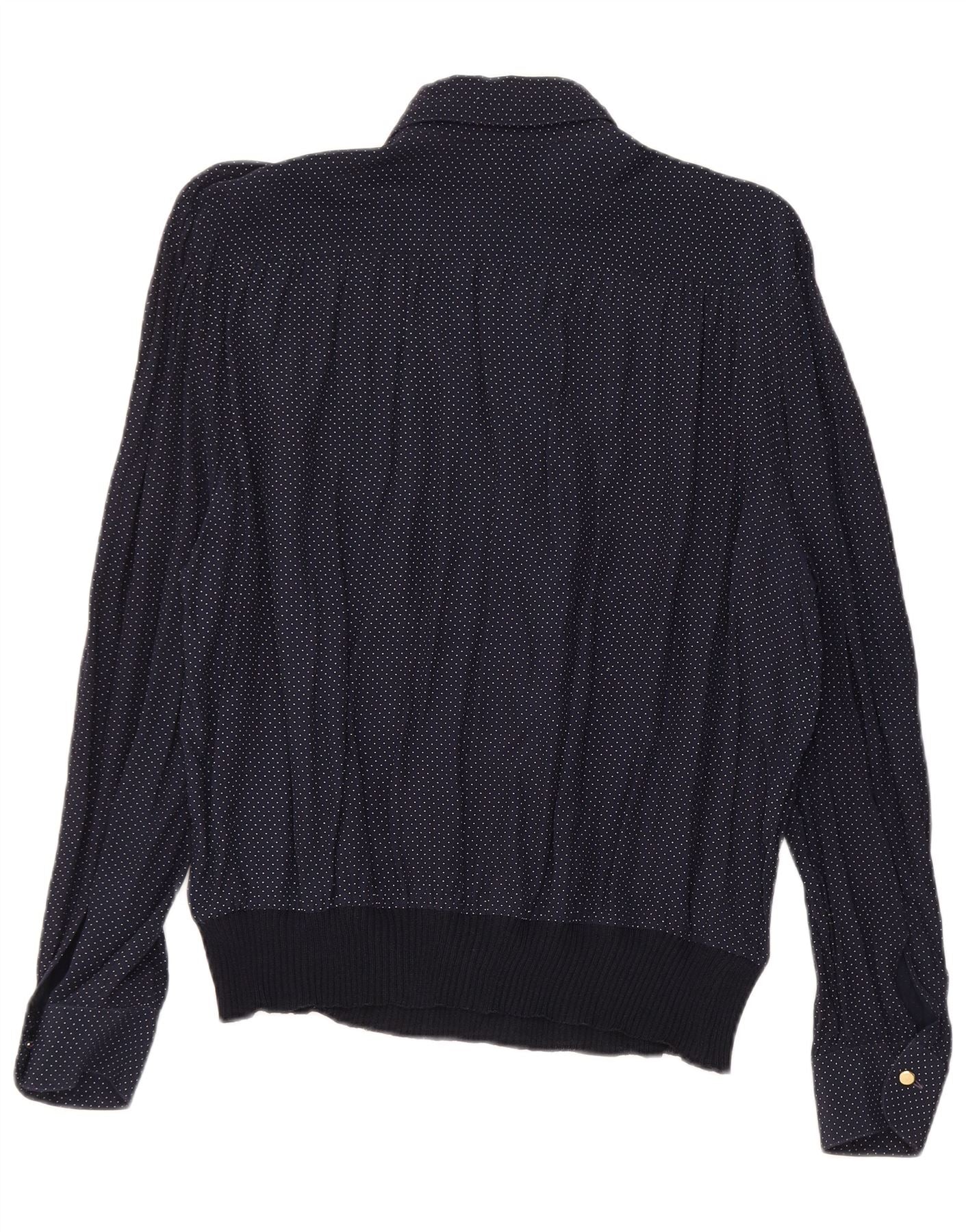VINTAGE Womens Shirt Blouse UK 16 Large Navy Blue Spotted Viscose