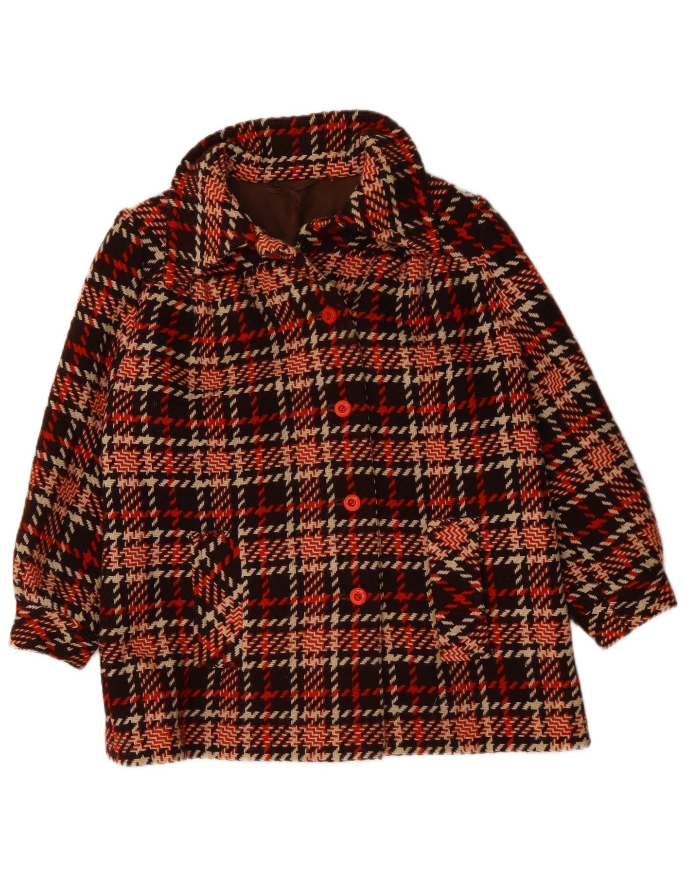 VINTAGE Womens Short Overcoat UK 18 XL Red Check