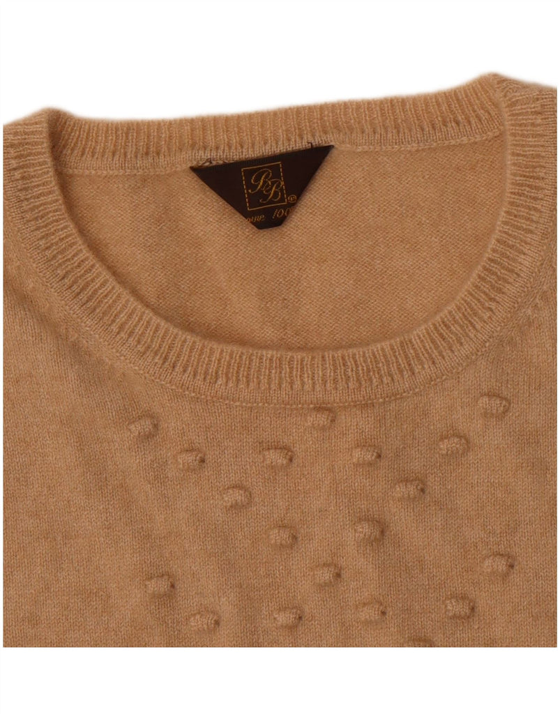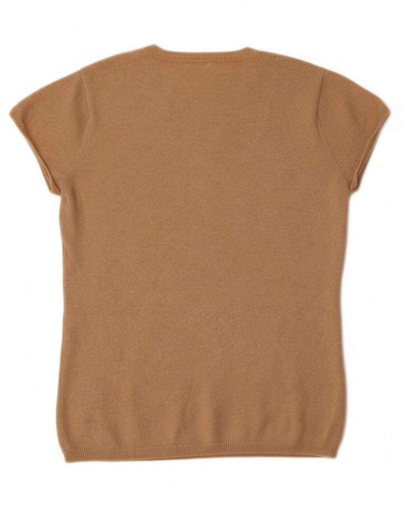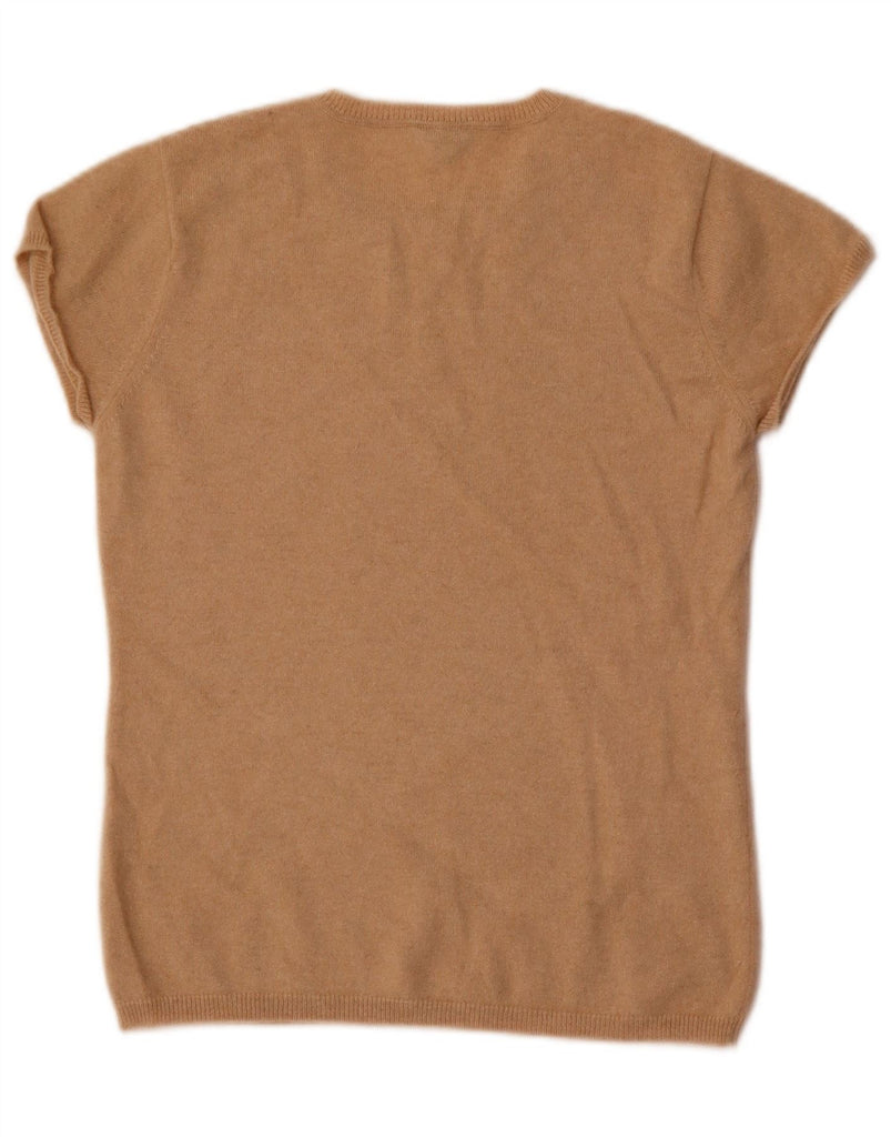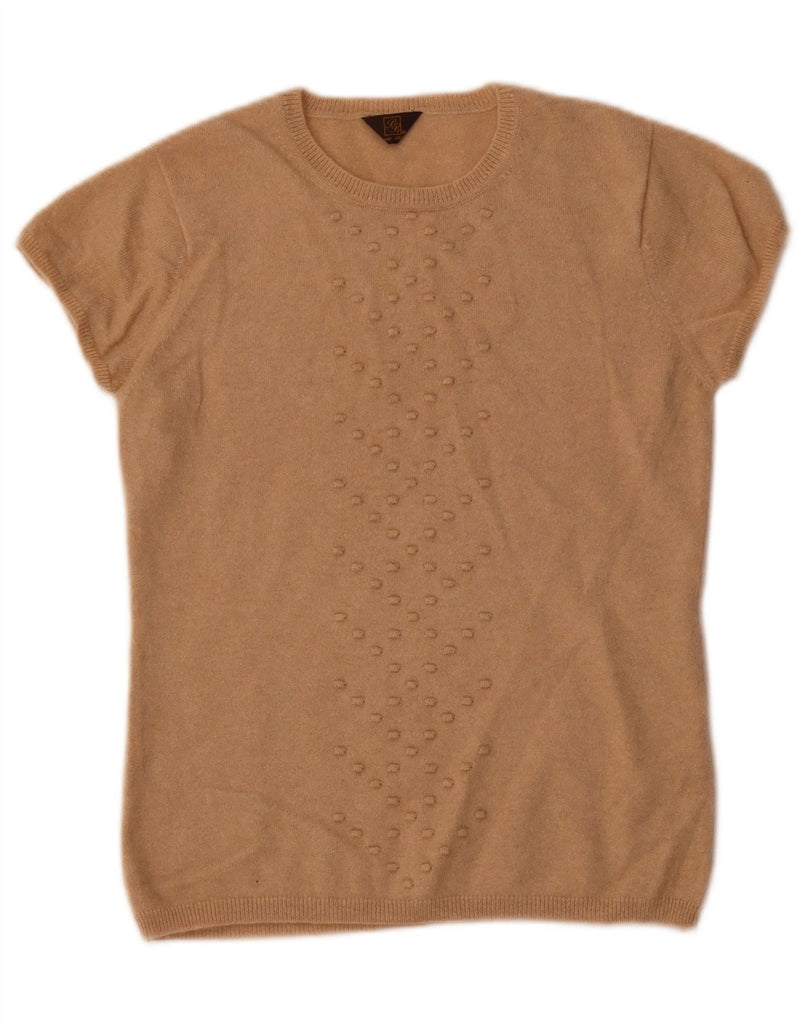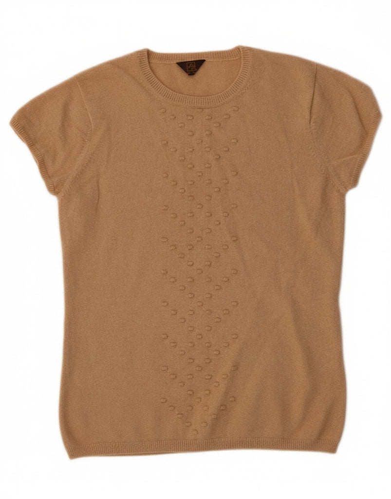 VINTAGE Womens Short Sleeve Crew Neck Jumper Sweater UK 10 Small Beige