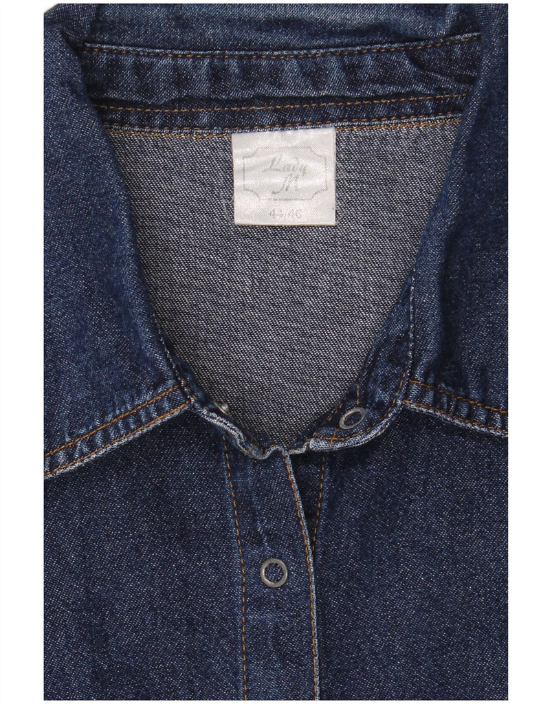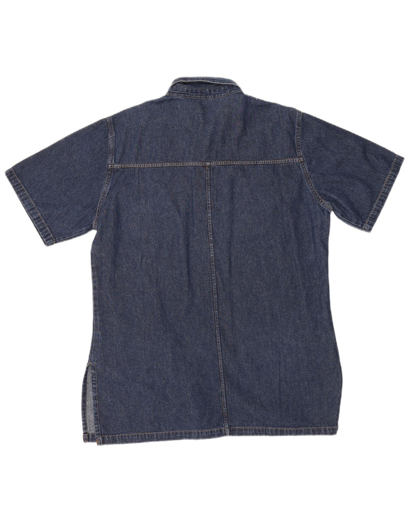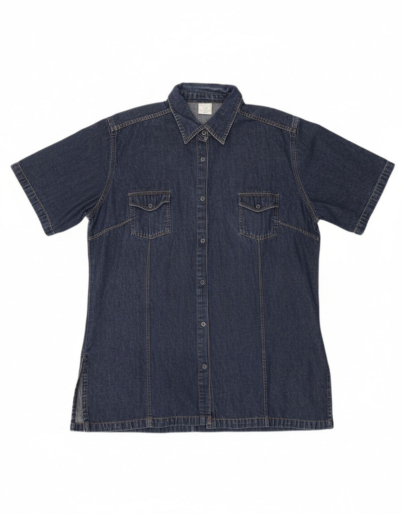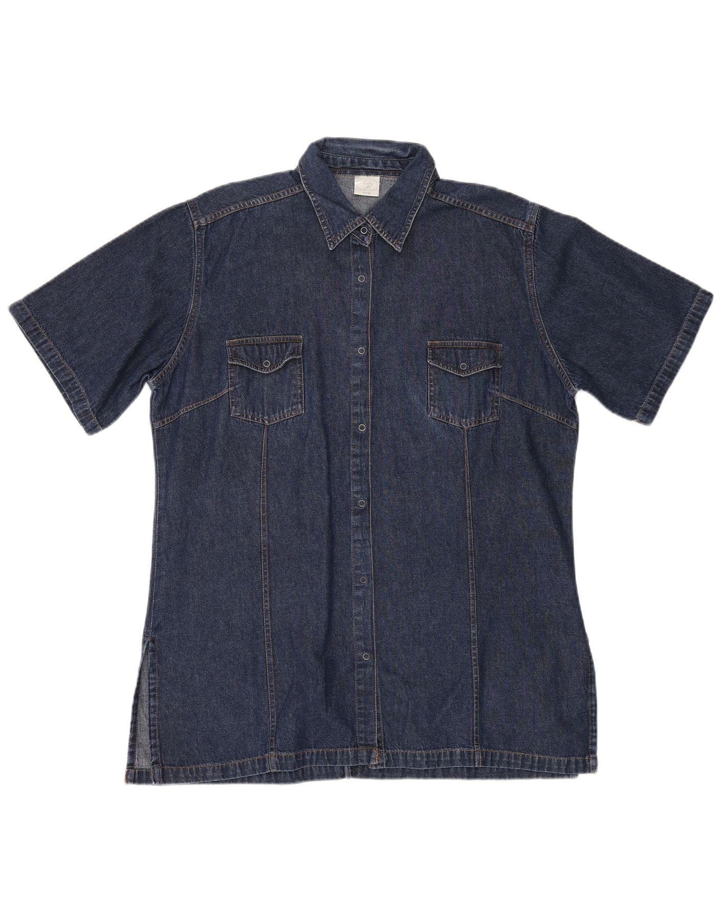 VINTAGE Womens Short Sleeve Denim Shirt EU 44/46 XL Navy Blue Cotton