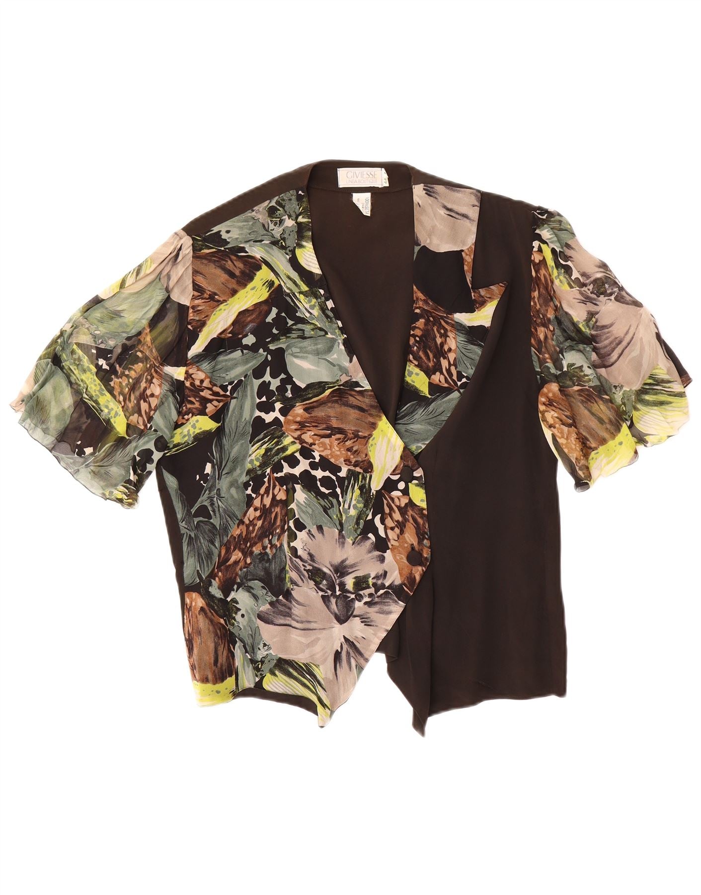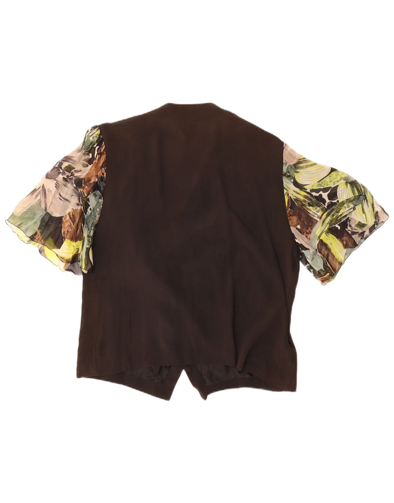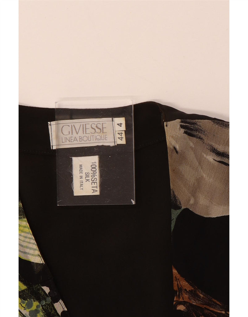 VINTAGE Womens Short Sleeve Shirt Blouse IT 44 Medium Black Floral Silk