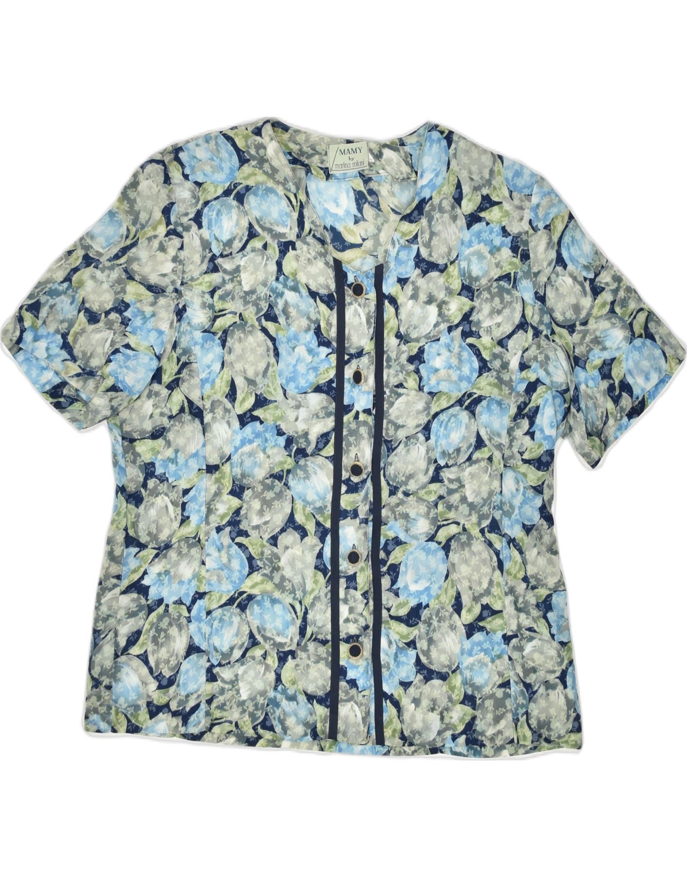 VINTAGE Womens Short Sleeve Shirt Blouse IT 52 XL Green Floral
