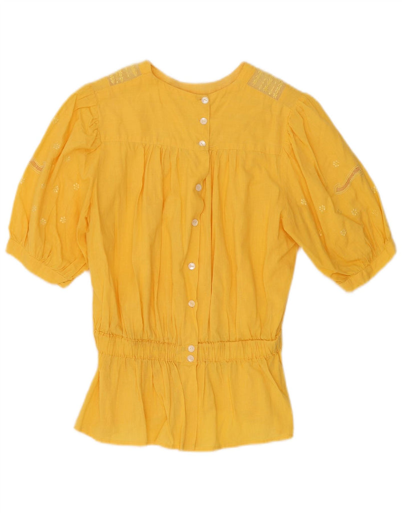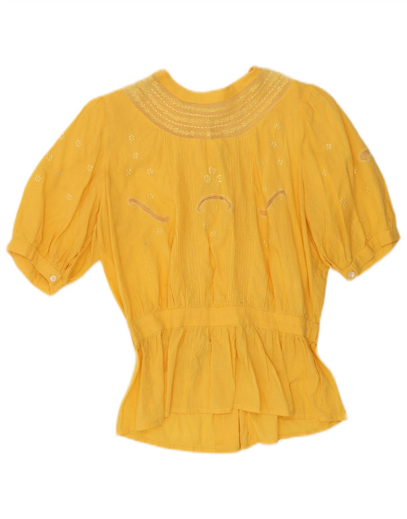 VINTAGE Womens Short Sleeve Shirt Blouse UK 12 Medium Yellow Floral
