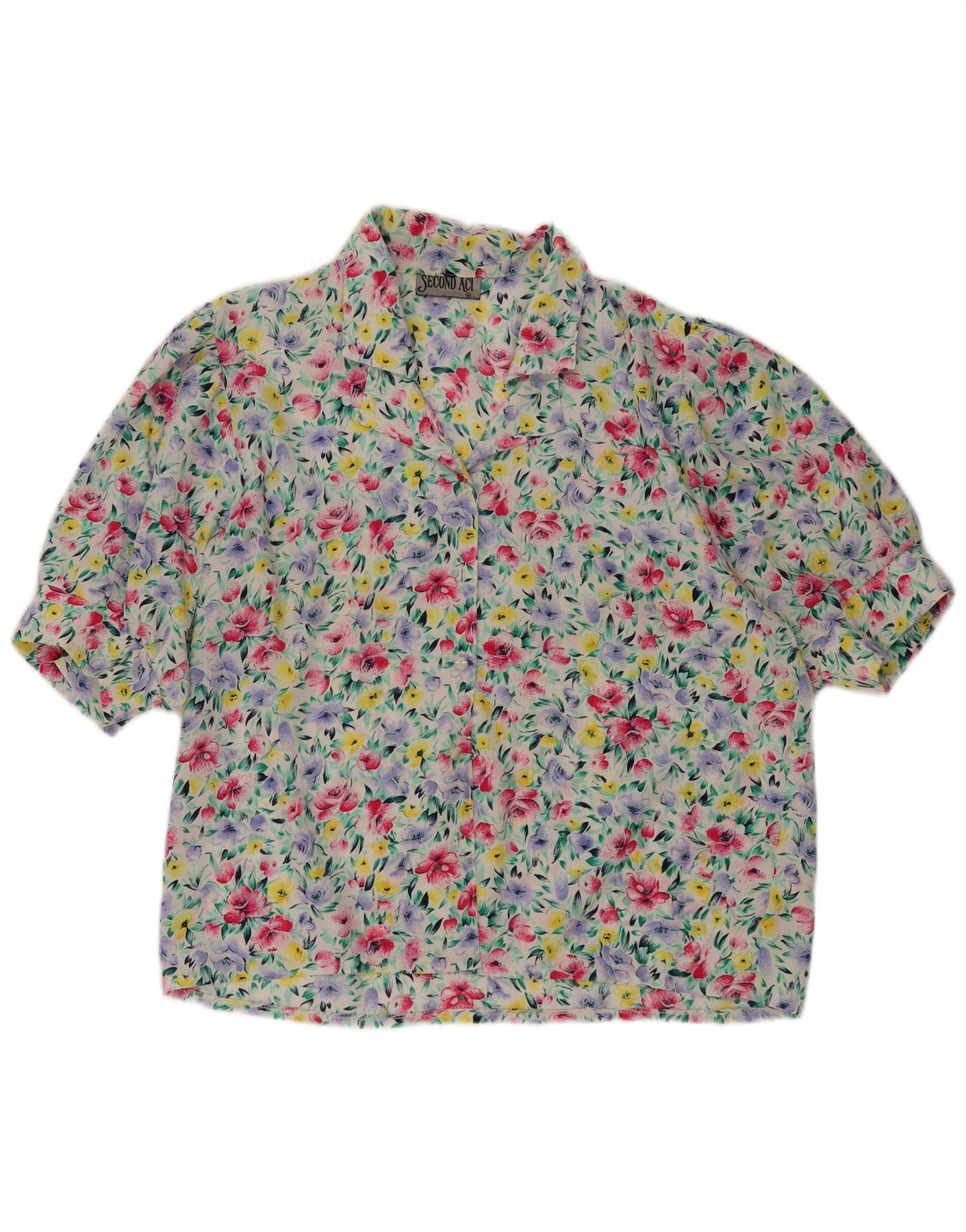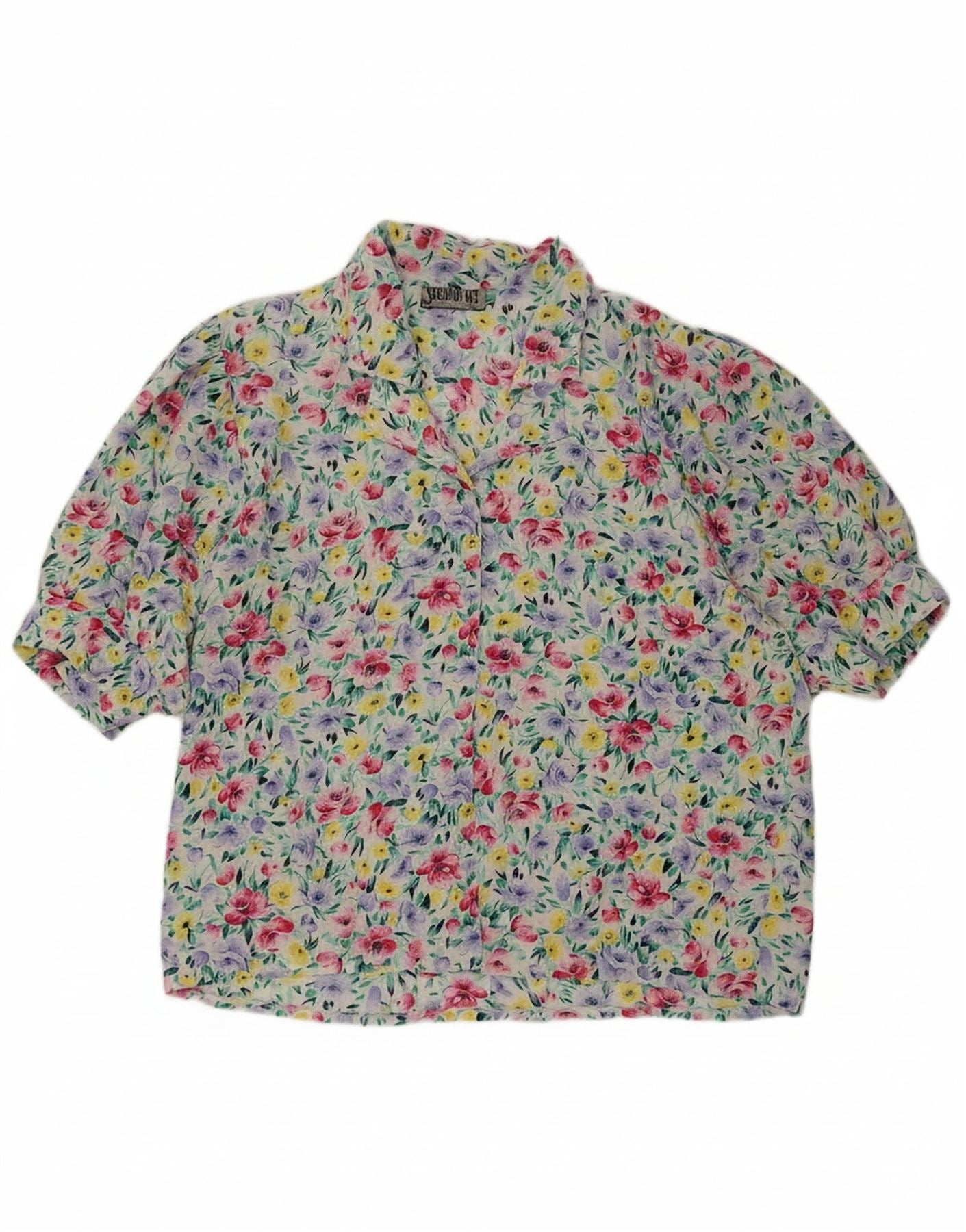 VINTAGE Womens Short Sleeve Shirt Blouse UK 16 Large Multicoloured Floral