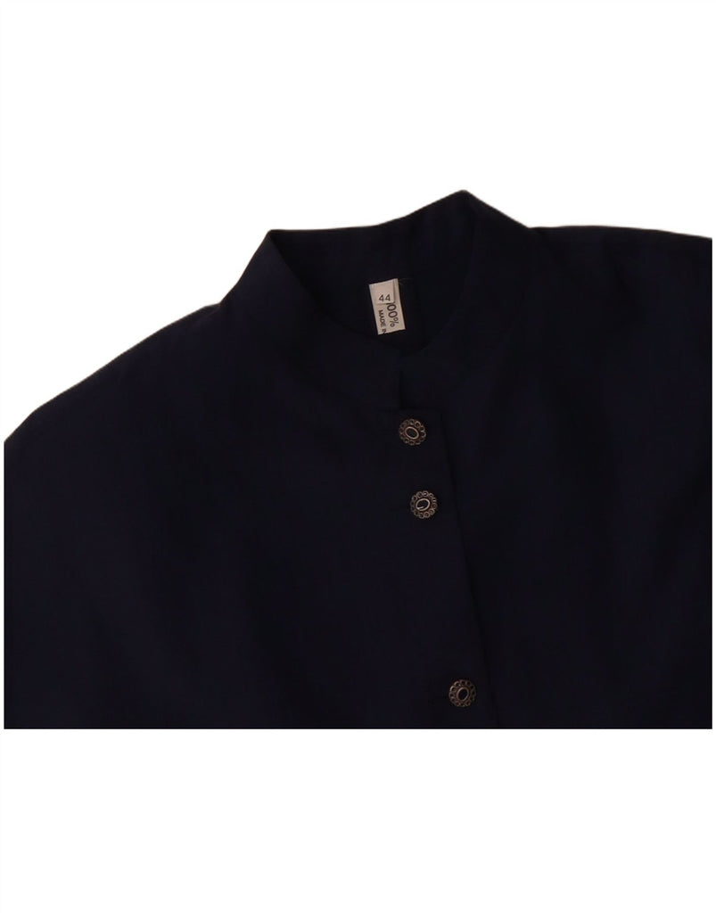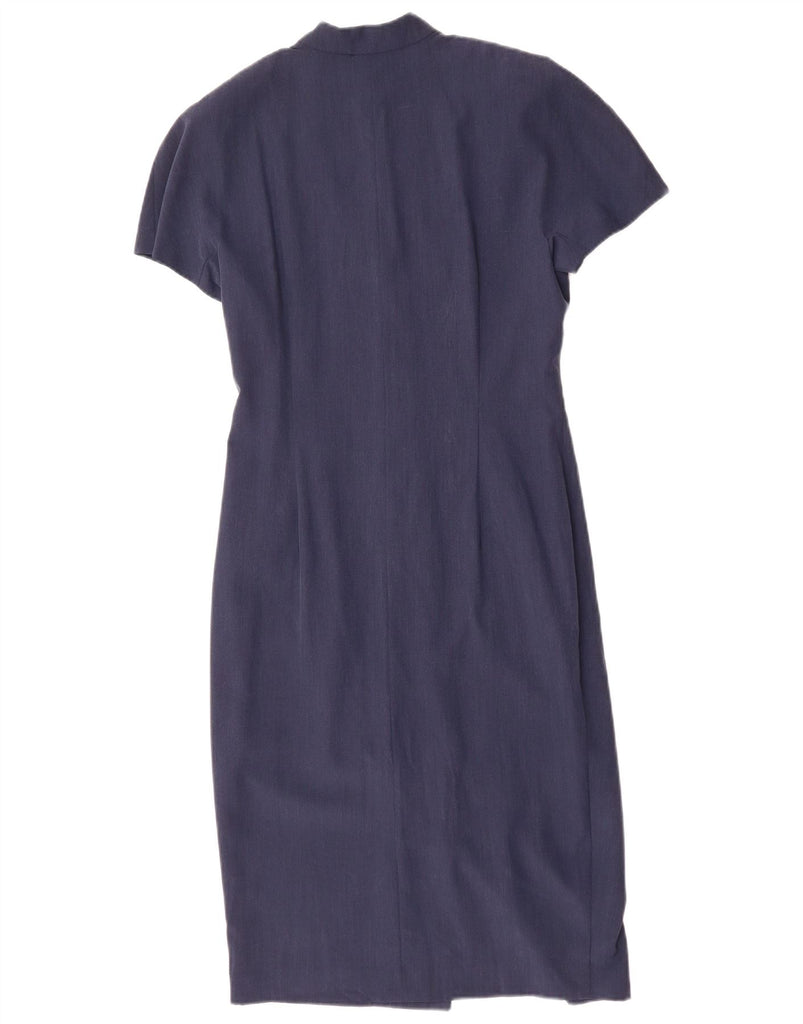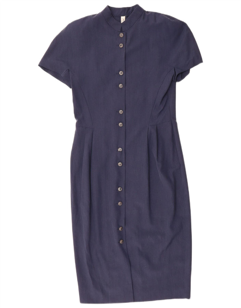 VINTAGE Womens Short Sleeves Shirt Dress IT 44 Medium Navy Blue Wool