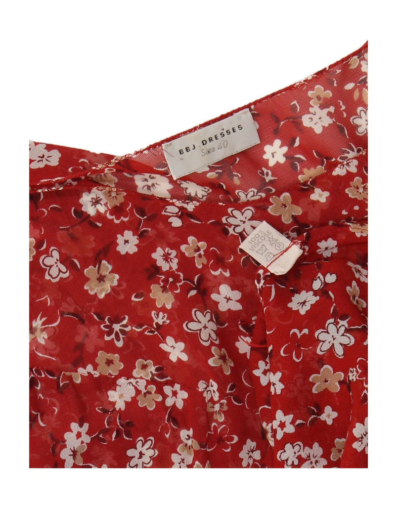 VINTAGE Womens Sleeveless A-Line Dress IT 40 Small Red Floral Viscose
