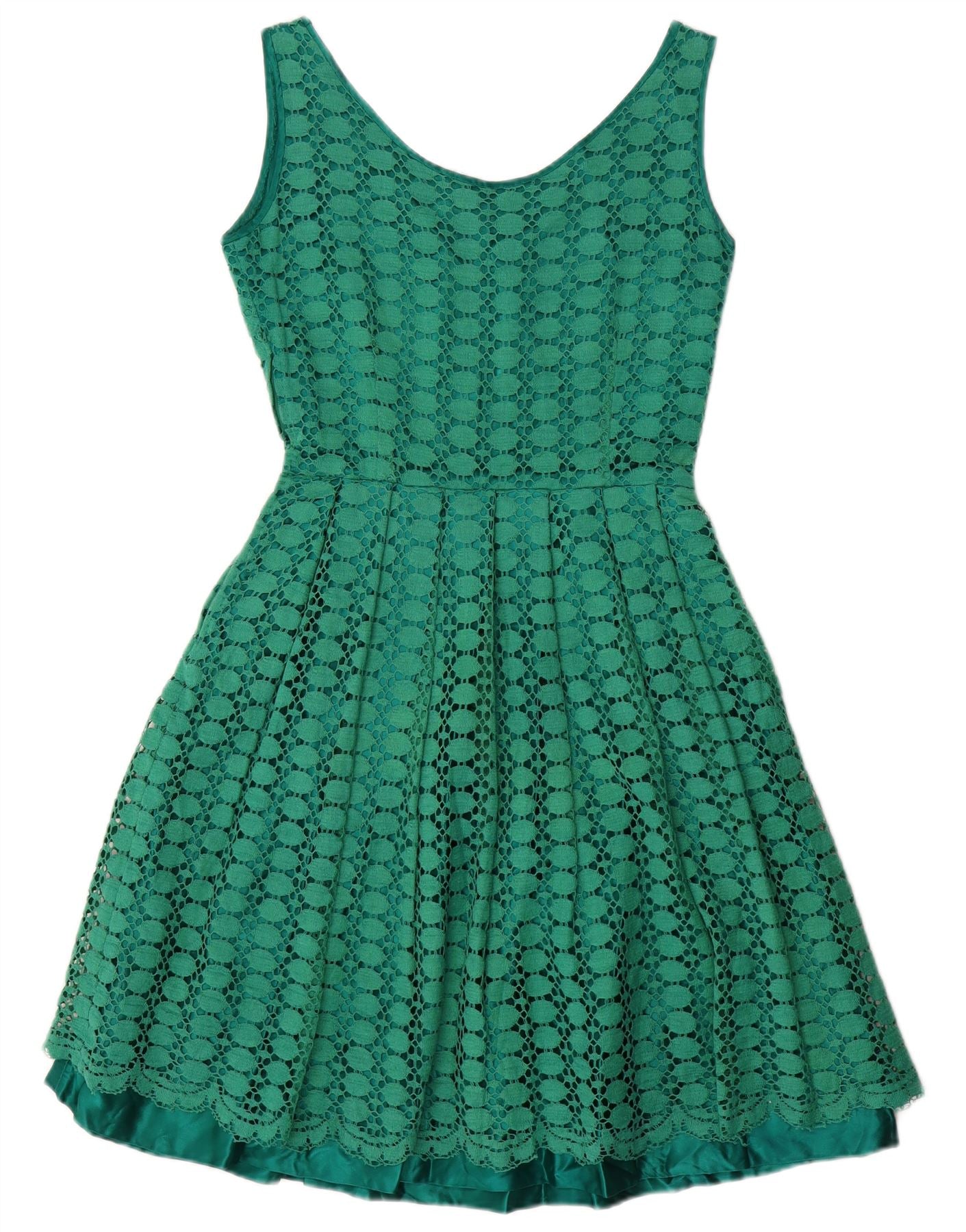 VINTAGE Womens Sleeveless A-Line Dress UK 10 Small Green