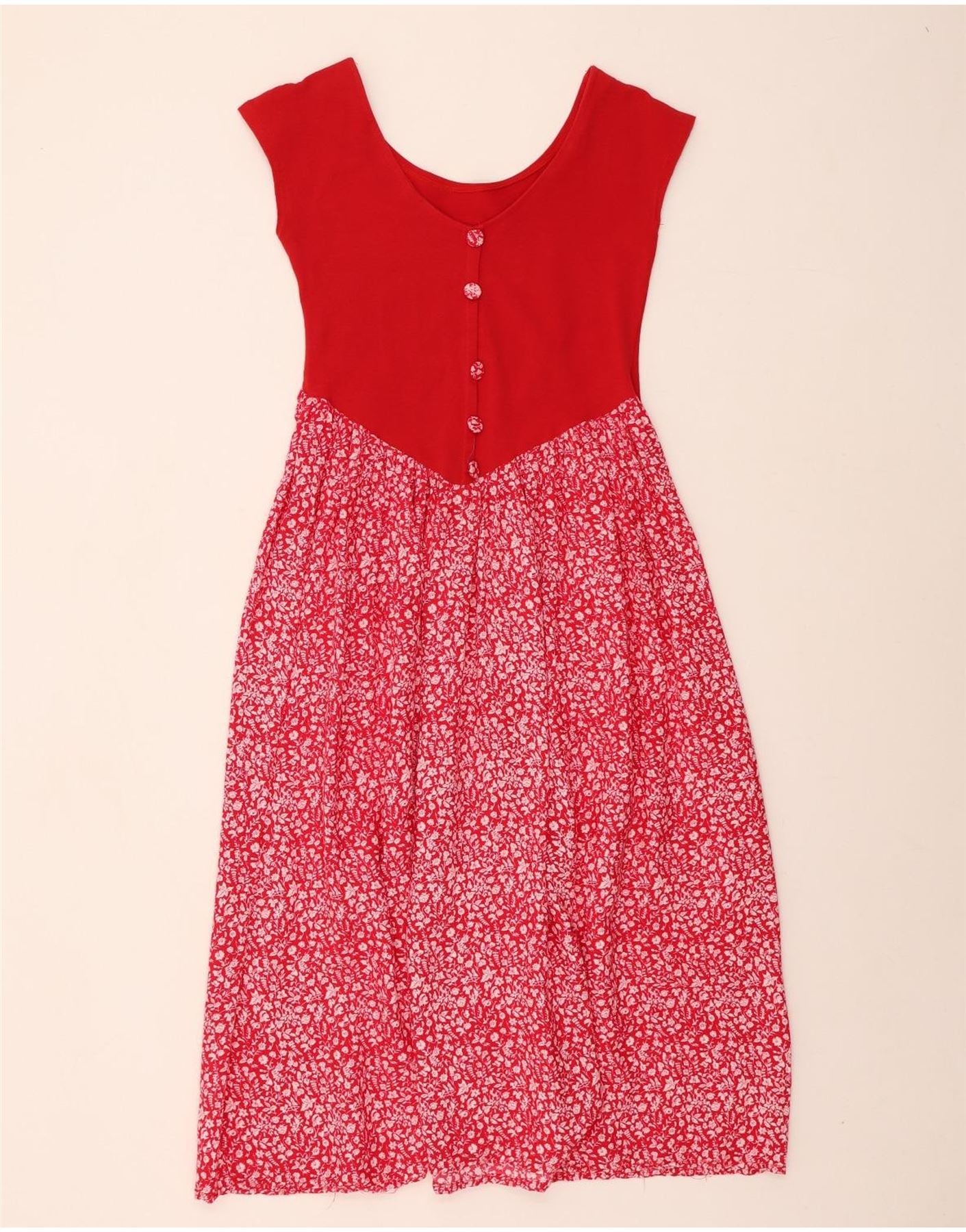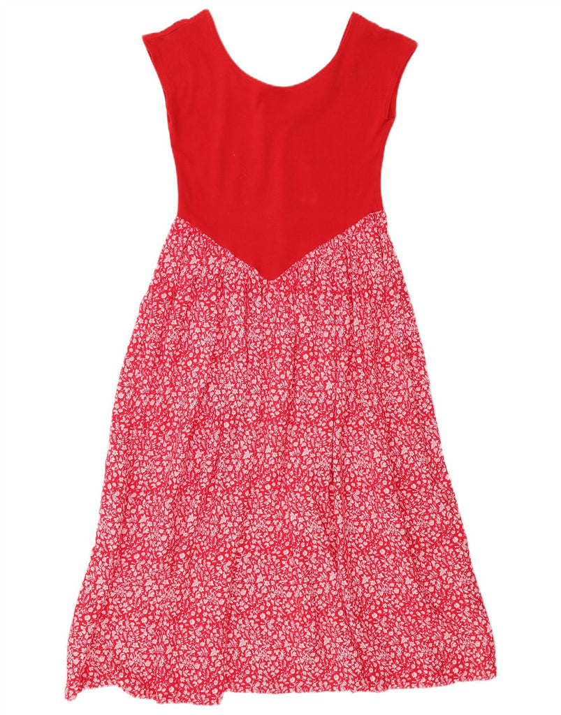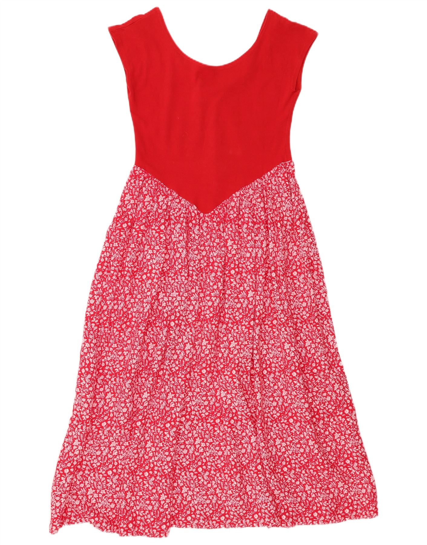 VINTAGE Womens Sleeveless A-Line Dress UK 8 Small Red Floral Viscose