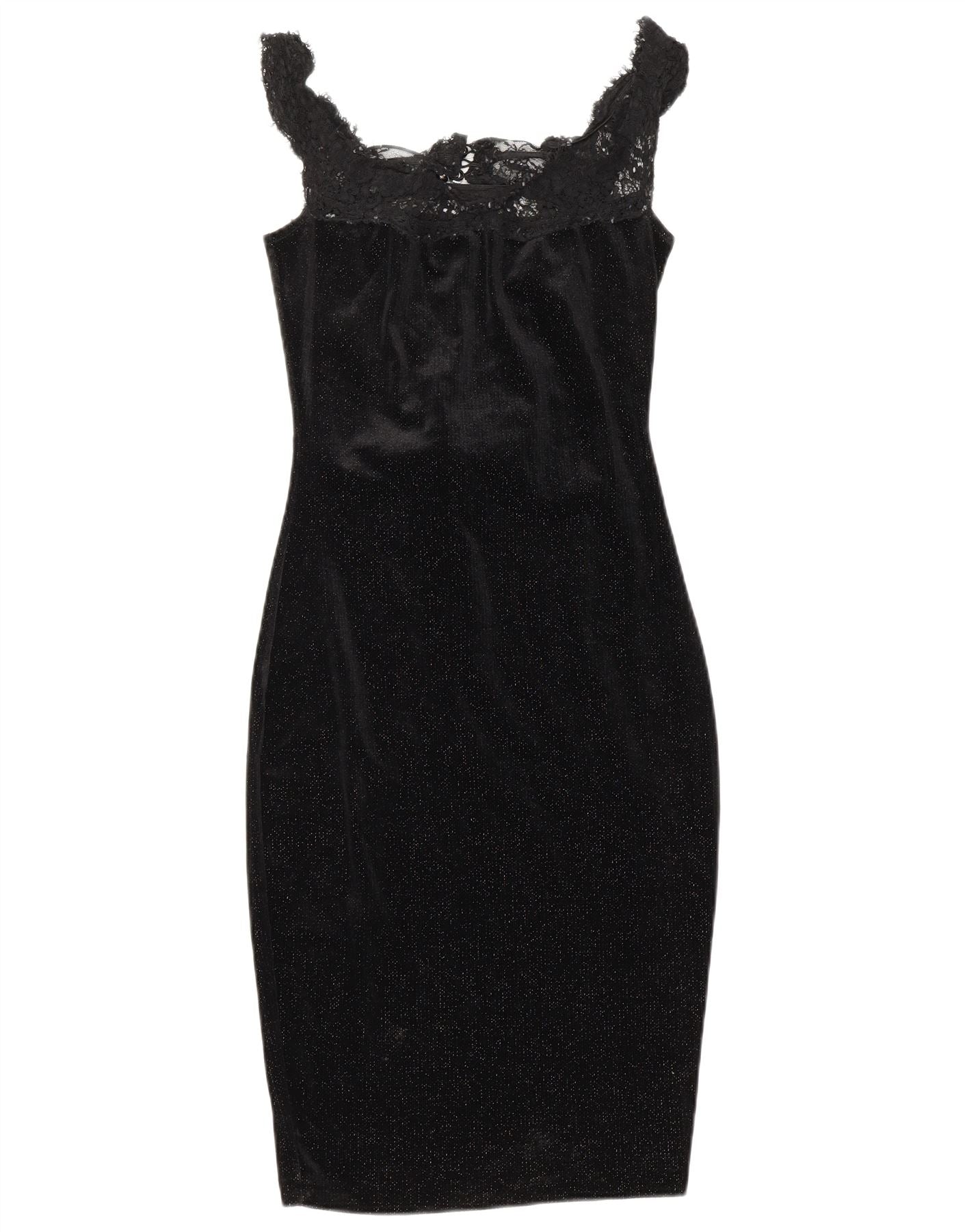 VINTAGE Womens Sleeveless Bodycon Dress UK 4 XS Black Flecked