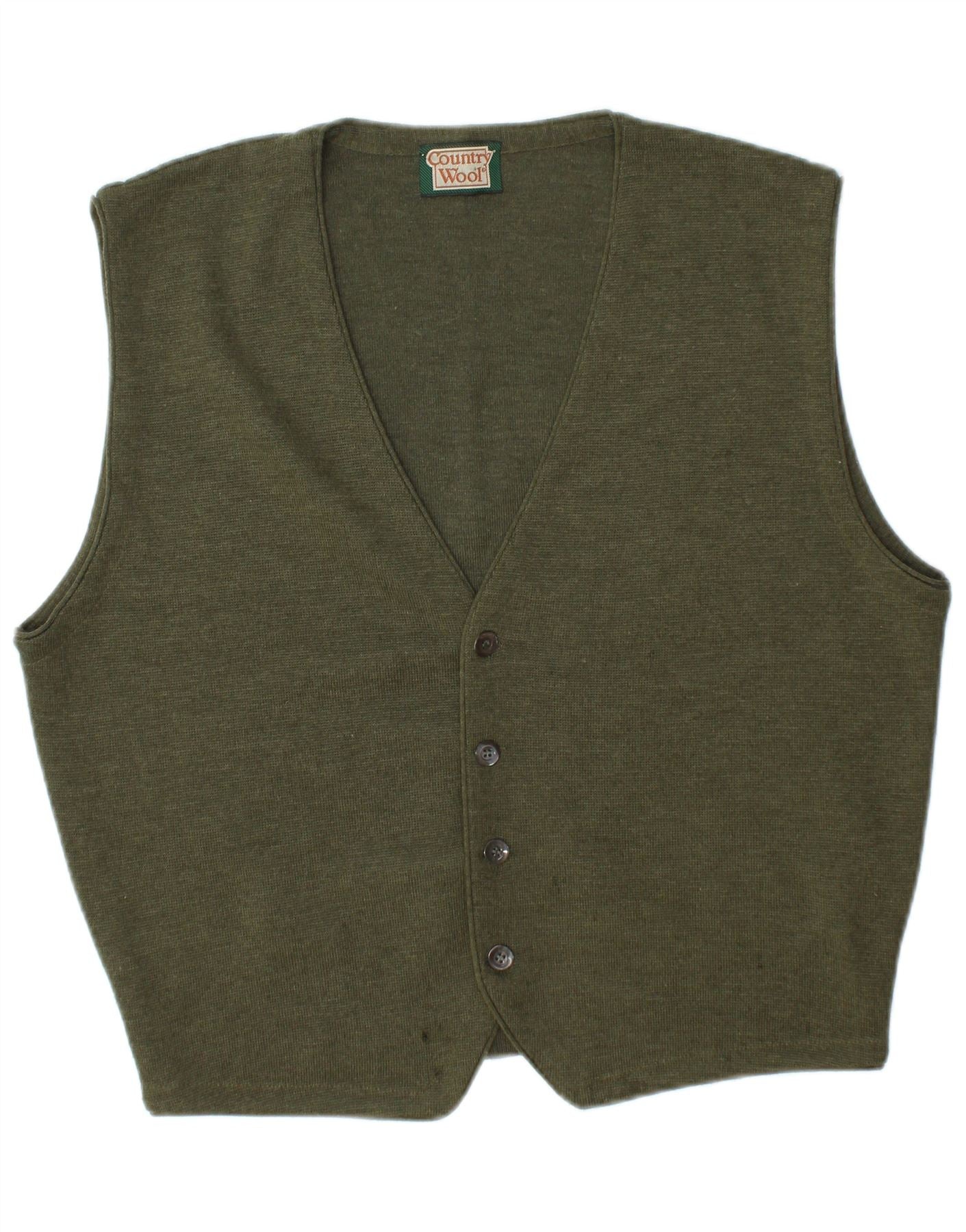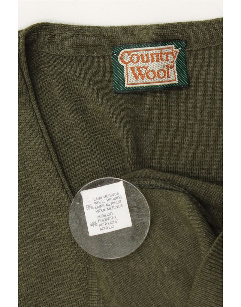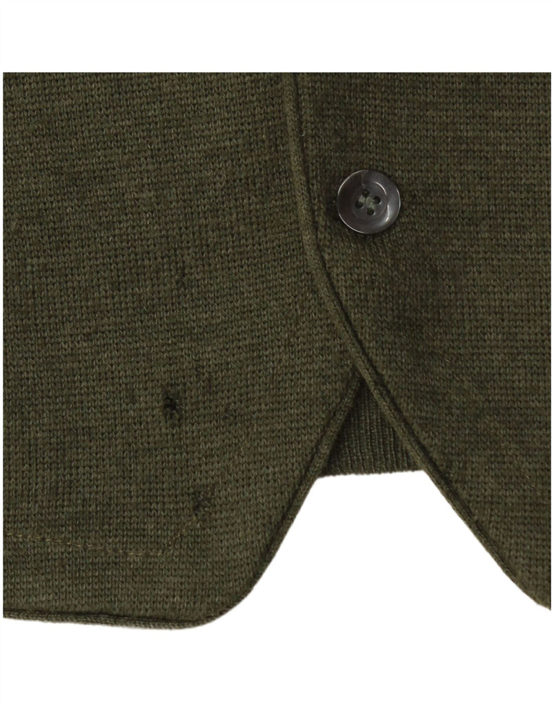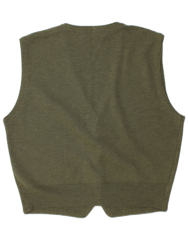 VINTAGE Womens Sleeveless Cardigan Sweater UK 16 Large Khaki Merino Wool