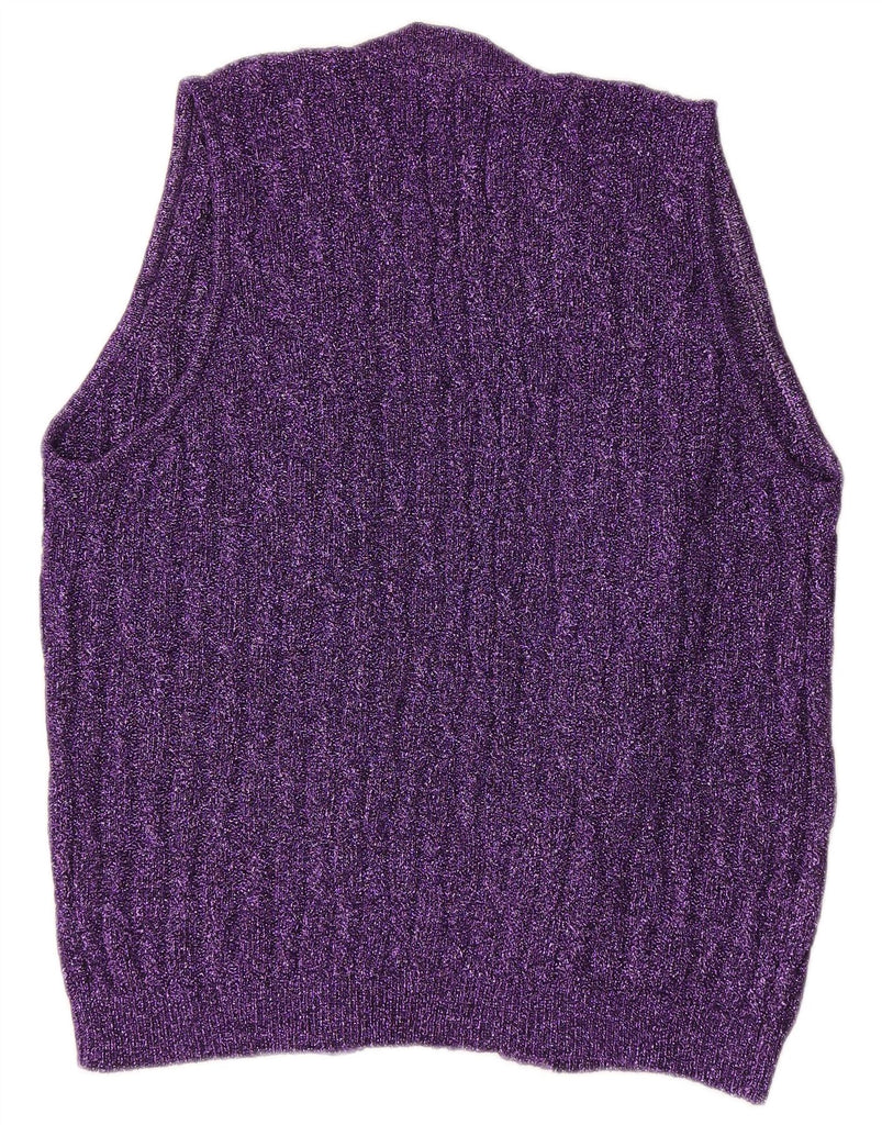 VINTAGE Womens Sleeveless Cardigan Sweater UK 16 Large Purple Flecked